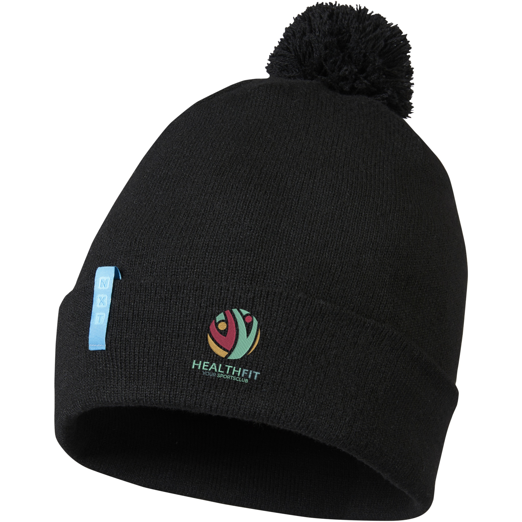 Each Olivine GRS recycled beanie is manufactured from 4 recycled PET bottles, making a positive contribution to the environment. This single-layer beanie features a double-folded edge, a matching pom, and a branded loop label for added style. Made of 1x1 rib knit GRS certified recycled polyester, nylon and elastane. The GRS certification ensures a 100% certified supply chain, from raw material to our printing techniques, making this a more sustainable choice.