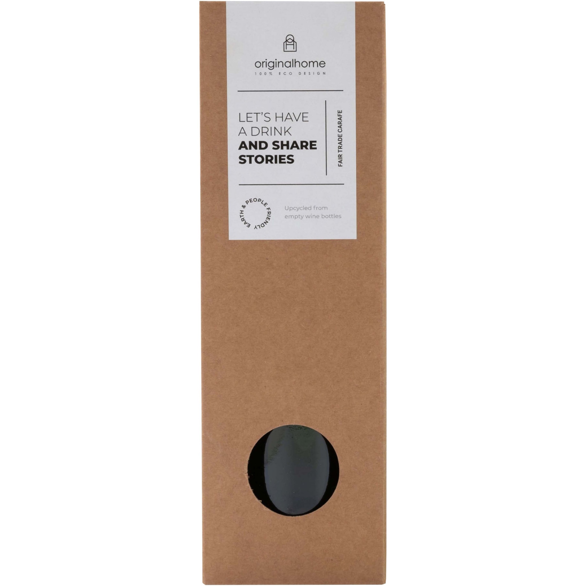 Handcrafted 750 ml water carafe made from upcycled wine bottles from Zanzibar, Tanzania. The wine bottles are collected from hotels, restaurants, and bars, and then they are sorted, cleaned, and cut into different shapes and sizes. Delivered in a gift box.