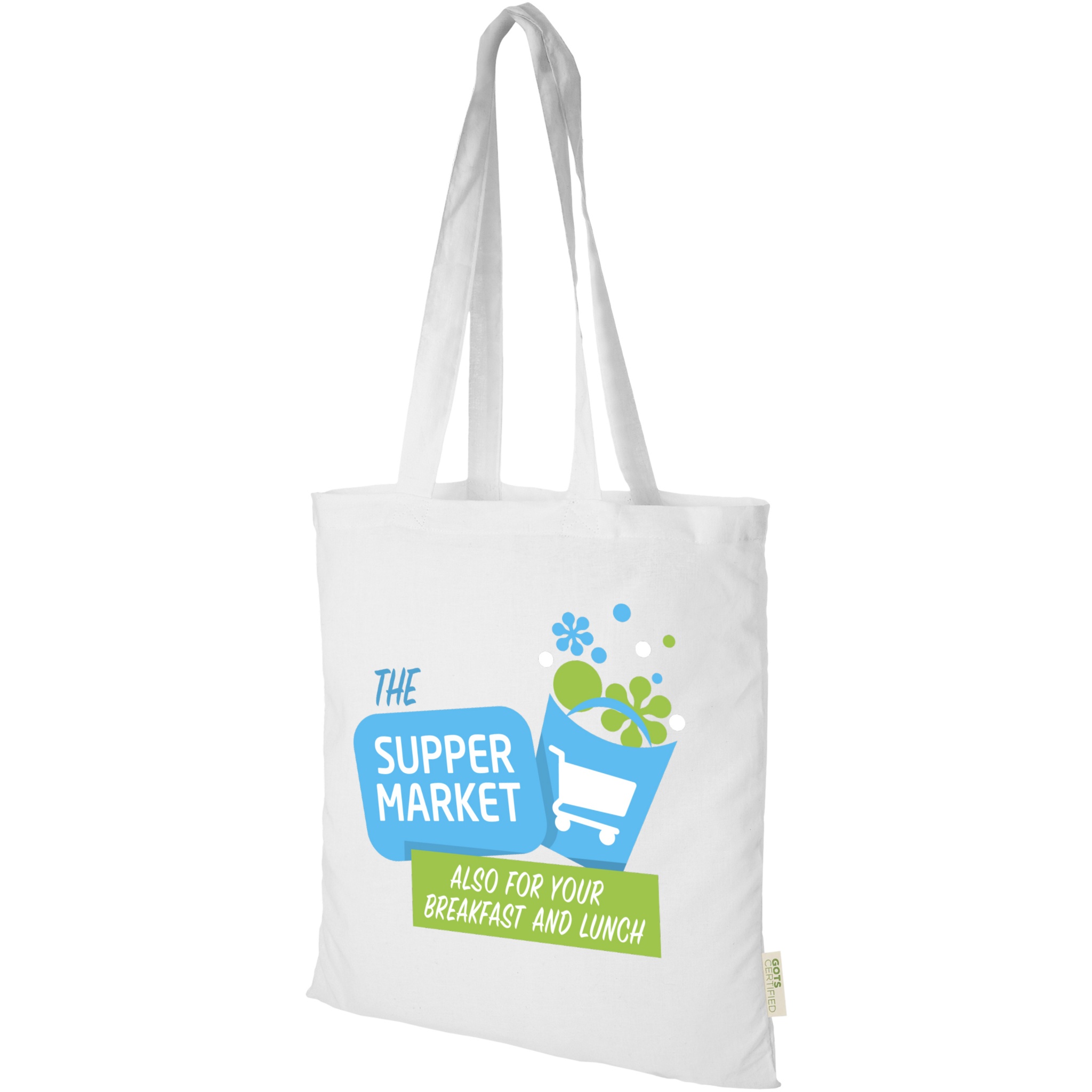 Sustainable tote bag with a large open main compartment providing plenty of space to carry around all of the essentials. The 32 cm long handles makes it comfortable and easy to carry around wherever you go. This tote bag is made in India with 100 g/m² organic cotton and is OEKO-Tex certified. Resistance up to 5 kg weight.