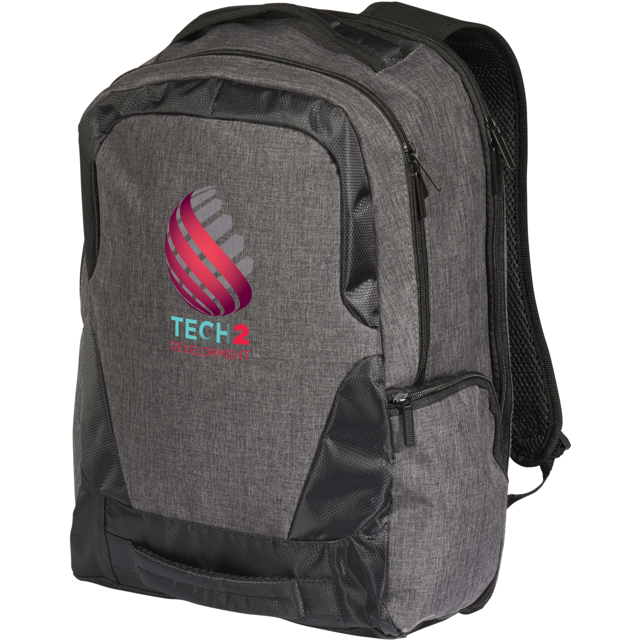 A sleek, 17" laptop backpack with USB port and cable. Equipped with RFID protection in side pocket, additional zippered pockets and a trolley strap on the back. The top and front grab handles and padded shoulder straps make it easy to carry around. There may be minor variations in the colour of the actual product due to the nature of the fabric dyes, weaves, and printing.