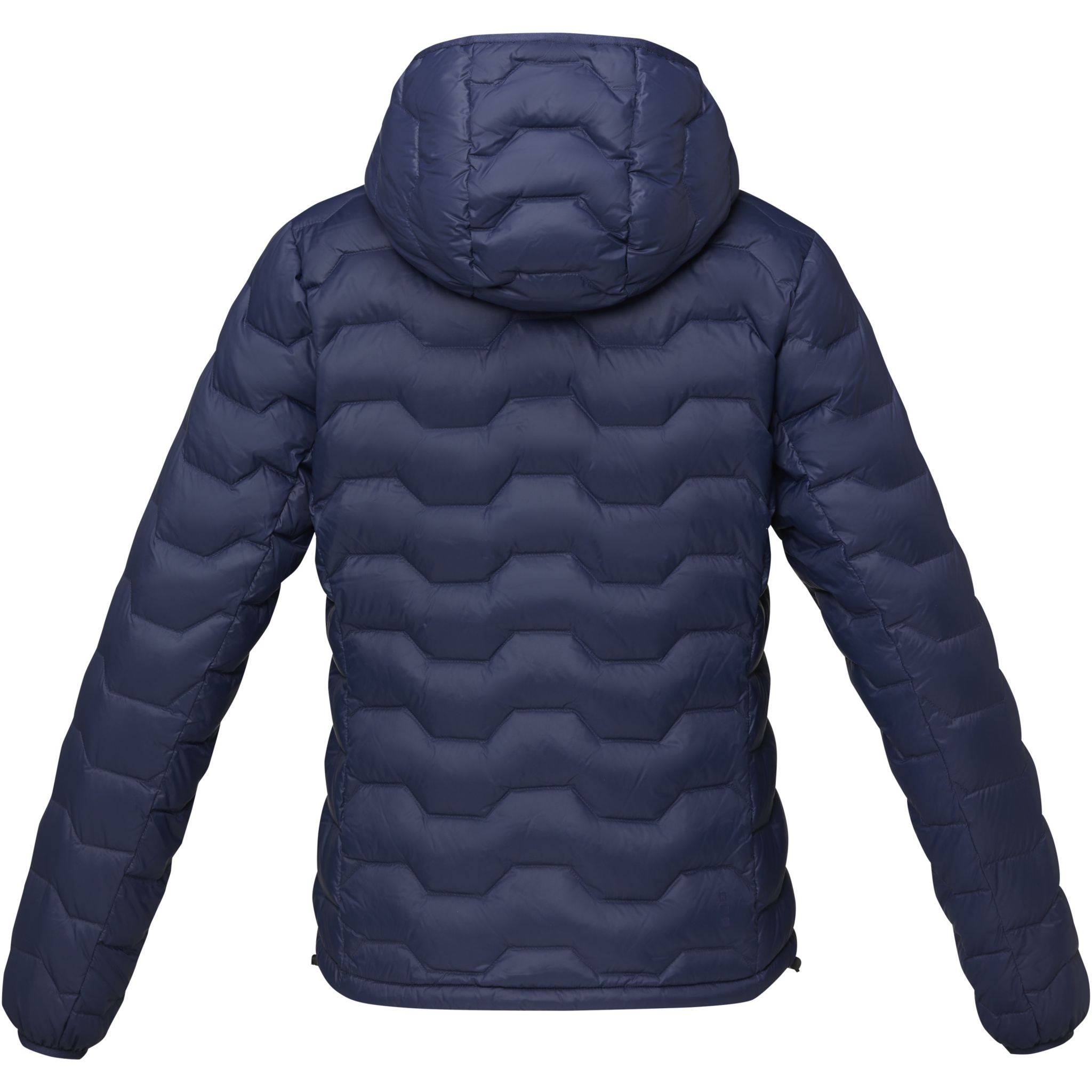The Petalite women's GRS recycled insulated jacket – a sustainable and stylish outerwear choice for environmentally-conscious adventurers. Crafted with precision and care, this jacket is fully GRS certified, making it a more sustainable addition to your wardrobe. Designed for comfort and warmth, the honeycomb quilted pattern shows a modern design and enhances insulation, while the GRS certified recycled nylon dull cire 380T woven fabric provides durability and weather resistance. Even the trims and accessories, including zippers, are thoughtfully sourced from recycled materials, ensuring every aspect of this jacket contributes to a greener planet. Equipped with practical features, the Petalite jacket has front pockets with zippers and an inside left bottom pocket for secure storage. The inner stormflap with chin guard shields you from the elements, while the elastic drawstring with adjustable cord lock in the bottom hem allows for a customised fit. The elastic binding on the hood ensures added protection against cold winds. The RDS certified recycled feathers provides warmth without compromising on ethical standards. With GRS certification guaranteeing a 100% certified supply chain, this garment truly represents an environmentally conscious choice. This jacket is designed with a fitted shape for a feminine look.