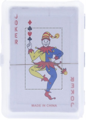 Classic playing cards in a plastic box. 54 cards.