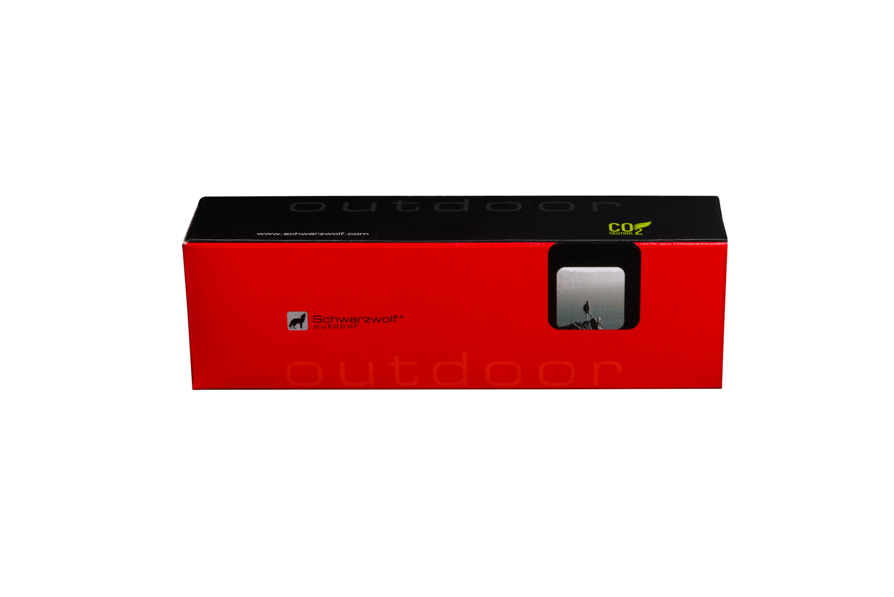 Multifunctional Schwarzwolf pocket knife. Includes 9 tools – knife, scissors, saw, corkscrew, bottle opener, can opener, flat screwdriver, phillips screwdriver and carabiner. The handle of knife is in a modern grooved design on the one side and has a smooth surface for your logo printing from the other side.