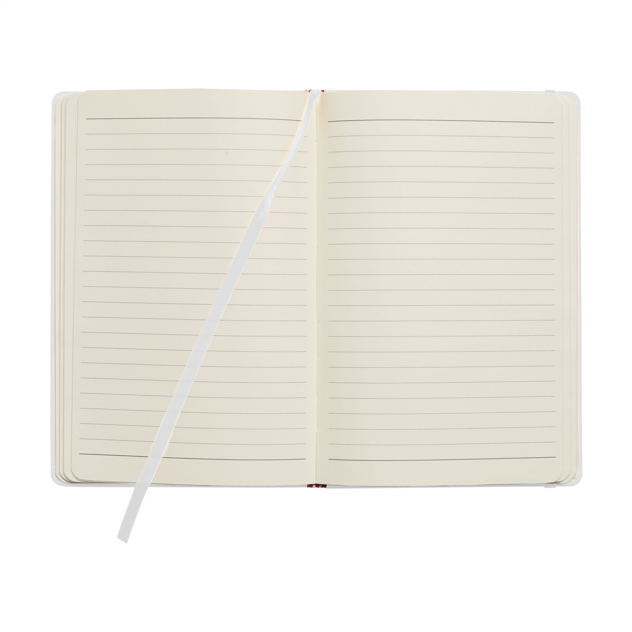 Notebook in A5 format with approx. 96 sheets/192 pages pages of cream coloured, lined paper (80 g/m²). With a perfect binding, hard cover, pocket, elastic fastener and silk ribbon.