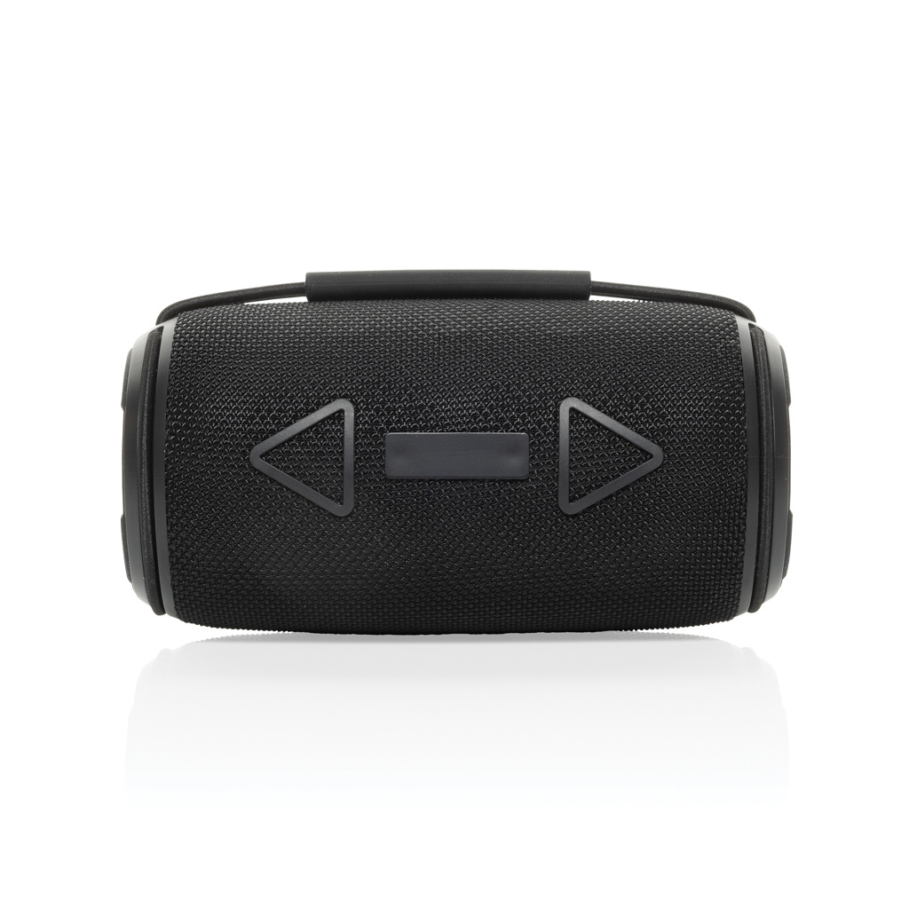 The Prisma RCS recycled plastic 16W Speaker combines exceptional audio performance with durability and low impact. Featuring a powerful 16W output and double subwoofers, this speaker delivers deep bass and crisp sound for an immersive listening experience. With an IPX4 waterproof rating, it’s built to withstand splashes and light rain, making it ideal for both indoor and outdoor use. The integrated carry handle and rechargeable 1500mAh li-ion battery provide portability and up to 7 hours of playtime at 50% volume, while BT 5.3 ensures seamless connectivity and auto pairing. The Prisma also includes a microphone and pickup function, perfect for hands-free calls. The case is made from RCS certified recycled ABS plastic and RPET fabric. RCS (Recycled Claim Standard) is a standard to verify the recycled content of a product throughout the whole supply chain. Total recycled content: 37% based on total item weight. This speaker is PVC-free and packaged in an FSC-certified kraft box.