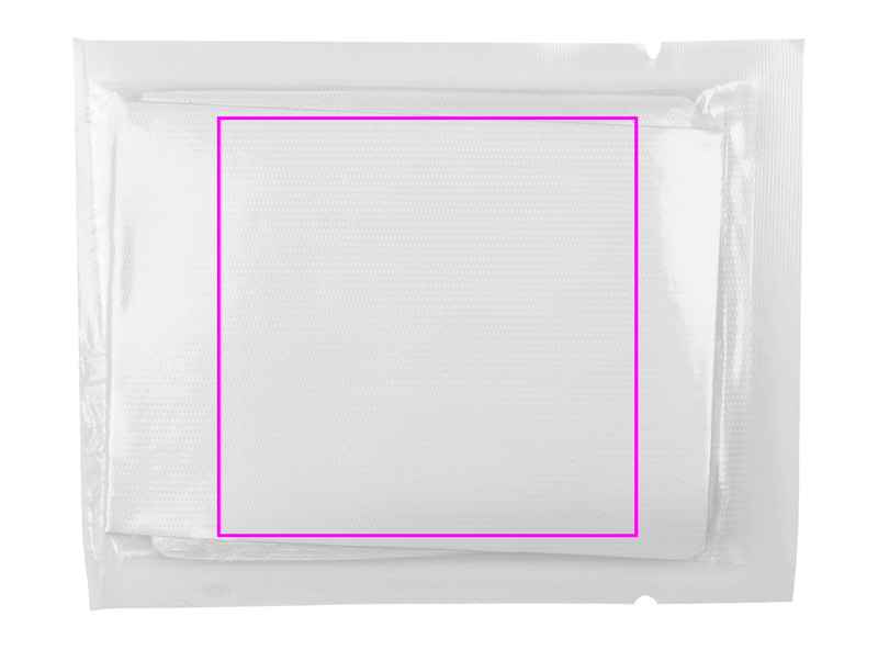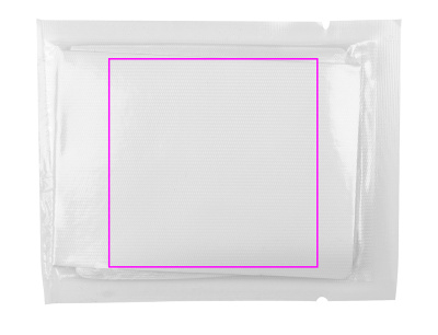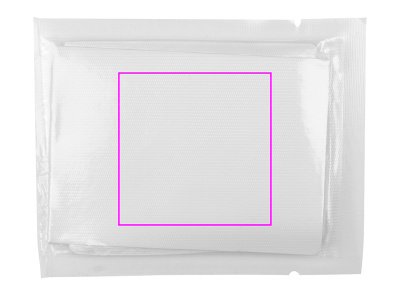 Rain poncho folded in a small size packaging (8,5 x 6 cm). We print your logo on a label attached to packaging. Back of unfolded coat - 113 x 78 cm.