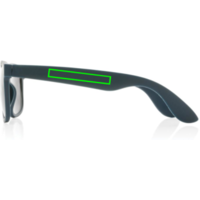 Sunglasses made with RCS certified recycled PP frame. Recycled content of frame is 100%. Total recycled content: 66% based on total item weight. RCS certification ensures a completely certified supply chain of the recycled materials. The lenses are smoky acrylic and conform to EN ISO 12312-1,UV 400 and CAT 3. Packed in an FSC® kraft sleeve.