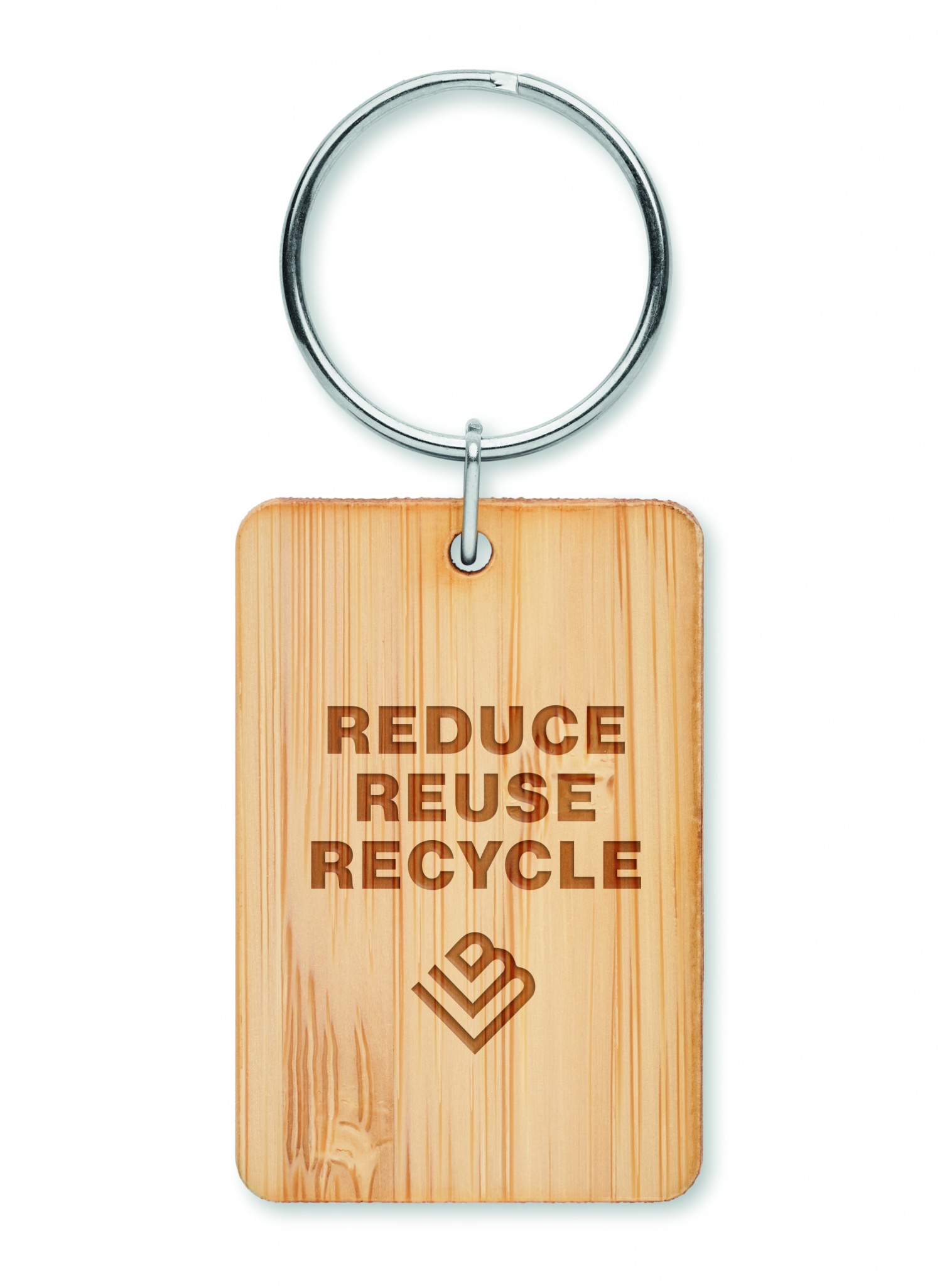 Logo trade promotional giveaway photo of: Rectangular bamboo key ring Riihimäki