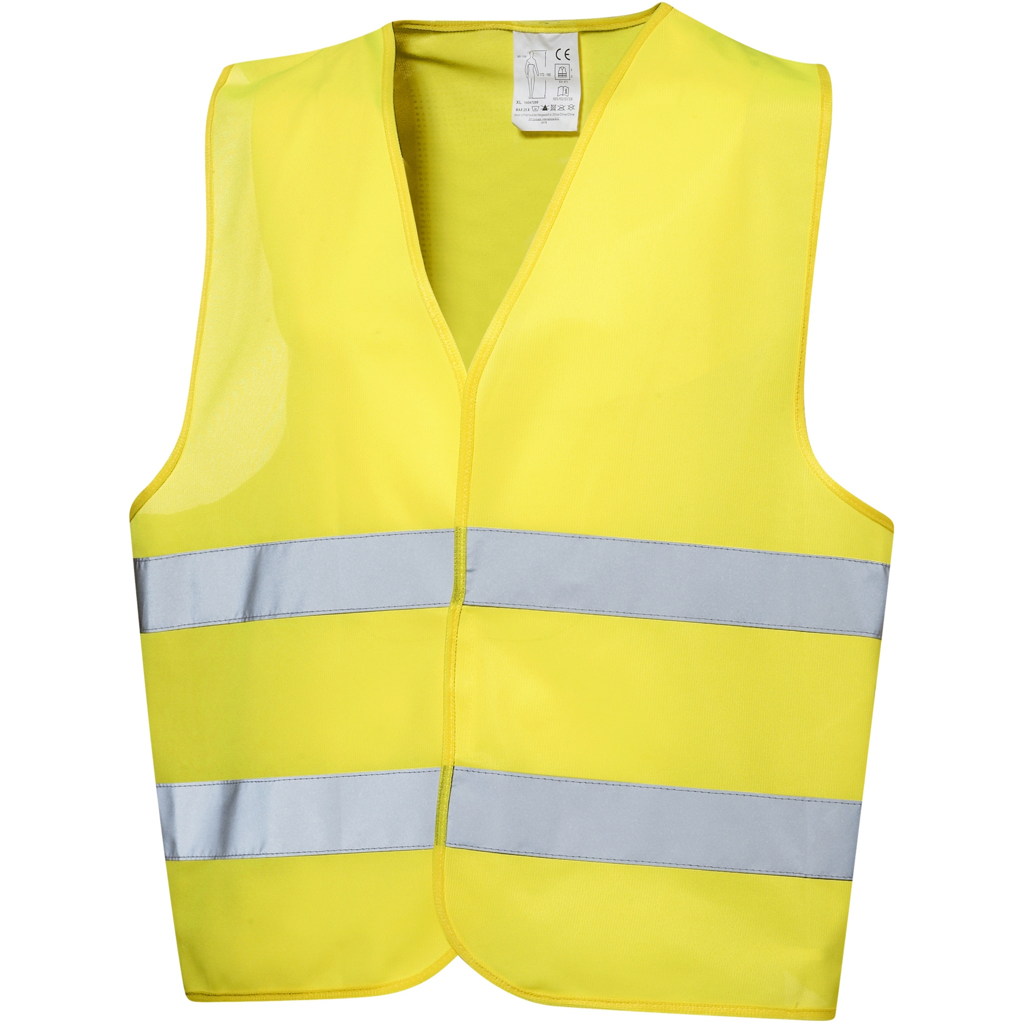 High visibility warning vest Class 2, suitable for persons with length between 165-180 cm. Comes in a same coloured material pouch which measures 21 x 17 cm. Large decoration area on the front/back of the vest, as well as on the pouch. Visibility clothing for professional use. Fluorescent background and reflective tape. Specification EN ISO 20471:2013+A1:2016. These garments bear CE marking to demonstrate compliance with EU Regulation 2016/425/EU Personal Protective Equipment Category II.