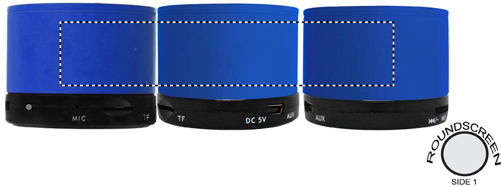 5.1 wireless speaker in ABS with rubber finish and LED light indication. 1 Rechargeable Lithium 450 mAh battery included. Includes an SD card port and an AUX / USB cable. Hands free call function. Output data: 3W, 3 Ohm and 5V. Playing time approx. 3h.