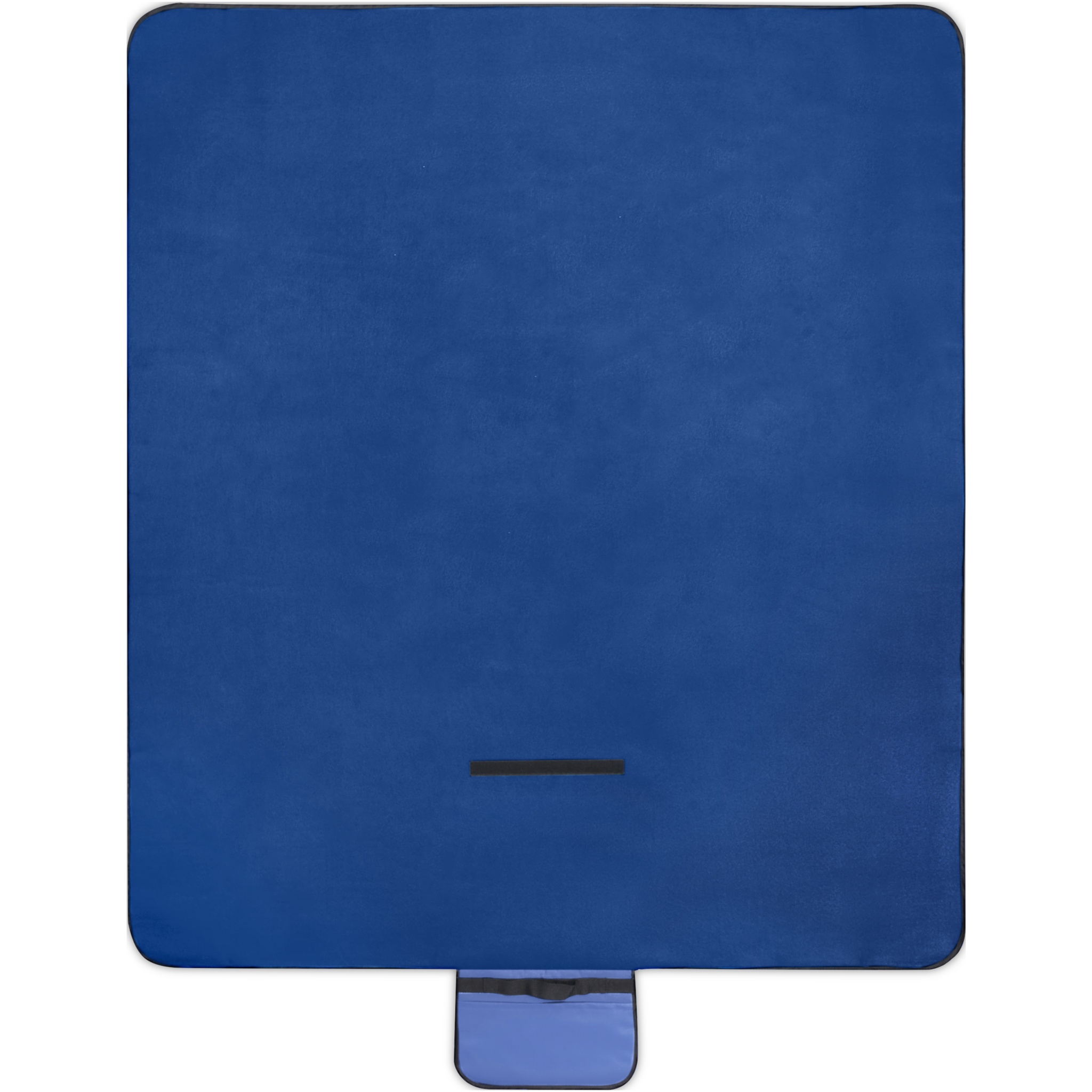 Water-resistant 140 g/m2 picnic blanket made of GRS certified recycled PET plastic, making it a sustainable choice. Once folded and secured, the blanket is easy to store and carry with the included carrying handle.