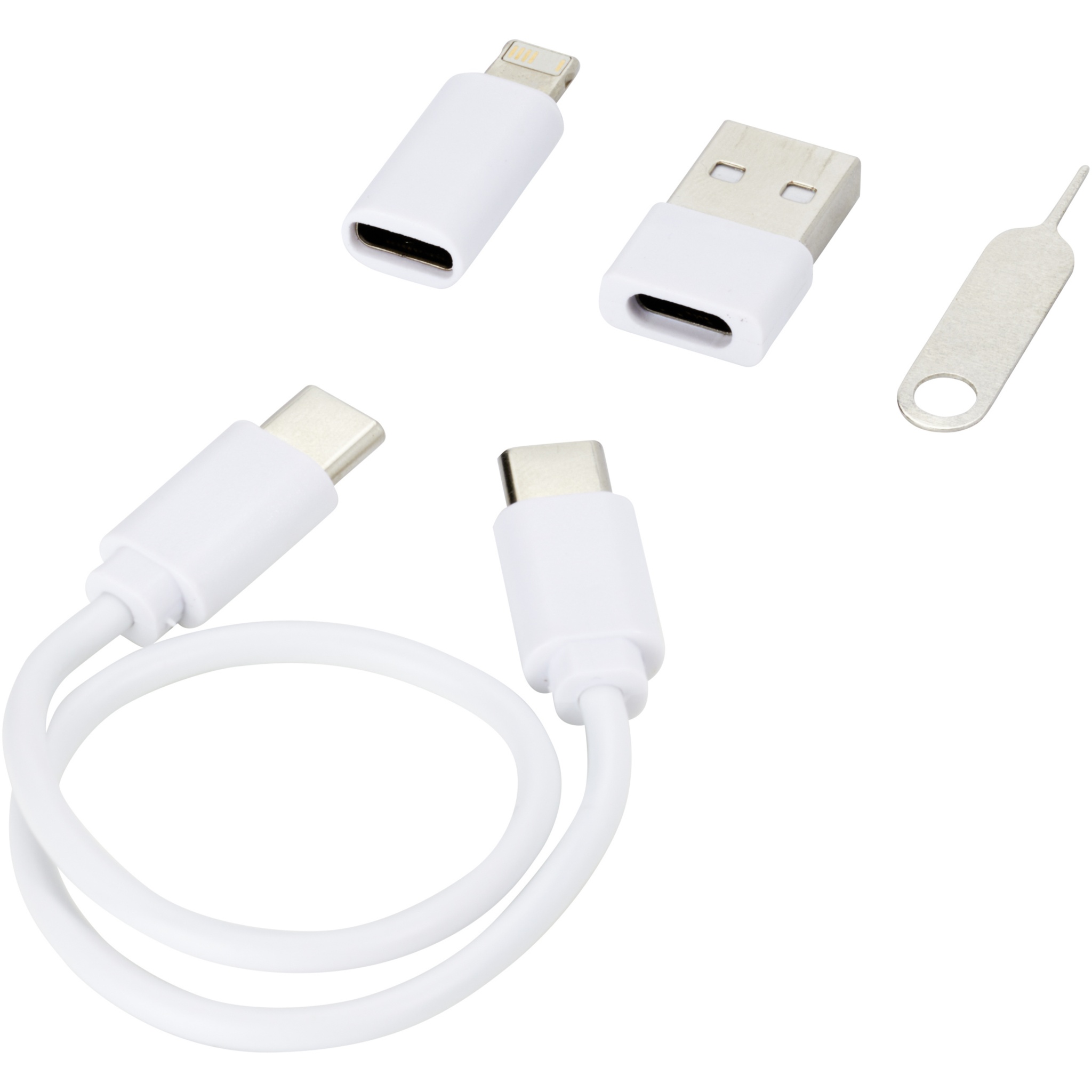 Modular data transfer and charging cable made from recycled plastic, delivered in an elegant storage box that also works as a phone stand. The cable offers multiple charging solutions: Type-C and USB-A input, and Type-C/iOS/micro USB output. Thanks to all of these adapters and connectors, this cable allows you to charge most smartphones, cameras, power banks, earbuds etc. The cable has a maximum output power of 2A. Features an eject pin that comes in handy anytime you need to take out your phone’s SIM card. The storage box also has room to store a micro SD memory card as well as a nano SIM card, making this the perfect travel accessory. Cable length: 26 cm. Supplied in a 100% recycled kraft paper envelope.