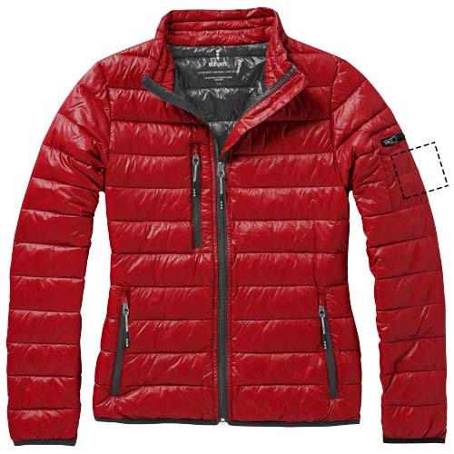The Scotia women's lightweight down jacket – the ultimate fusion of style and comfort. This jacket features elasticated binding on the bottom and sleeves, offering a comfortable and slightly tight fit that adds protection against chilly winds. The outer shell fabric is made of nylon dull cire 20D woven with a water-repellent finish, ensuring exceptional durability and good protection against the elements. The lightweight material allows for easy movement and effortless wear throughout the day. The downproof pressed fabric prevents the down and feathers from escaping, ensuring long-lasting warmth and an extra level of durability. The down insulation is RDS certified (Responsible Down Standard), consisting of down and feathers, providing lightweight warmth without compromising ethical standards. A reliable companion for any outdoor adventure. This jacket is designed with a fitted shape for a feminine look.