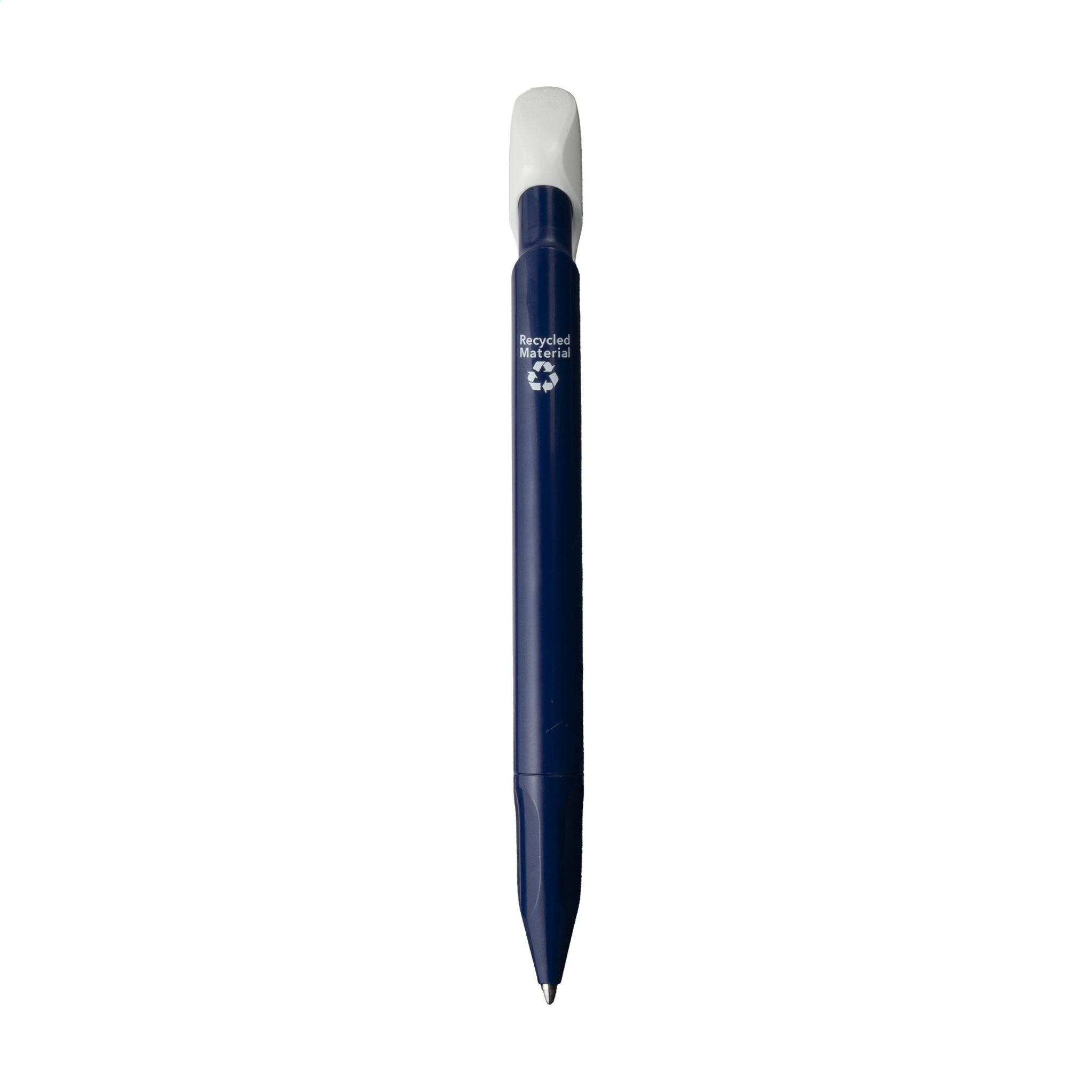 Blue ink ballpoint pen from the Senator® brand. Made from 95% R-ABS recycled material with a beautifully polished finish. This pen has a striking design due to the special clip and the well-thought-out tip with an ergonomic grip. Made in Germany. Slight irregularities in the surface of the recycled material are possible.