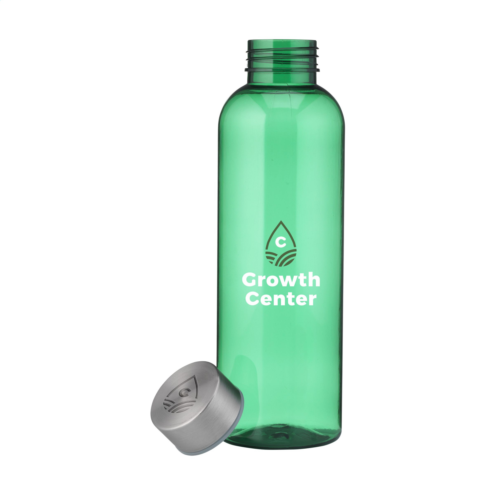 WoW! This water bottle is made from 100% RPET and has a stainless steel leak proof screw cap. With an attractive and slim design, it is particularly comfortable to hold. BPA free. Capacity 500 ml. GRS-certified. Total recycled material: 80%.