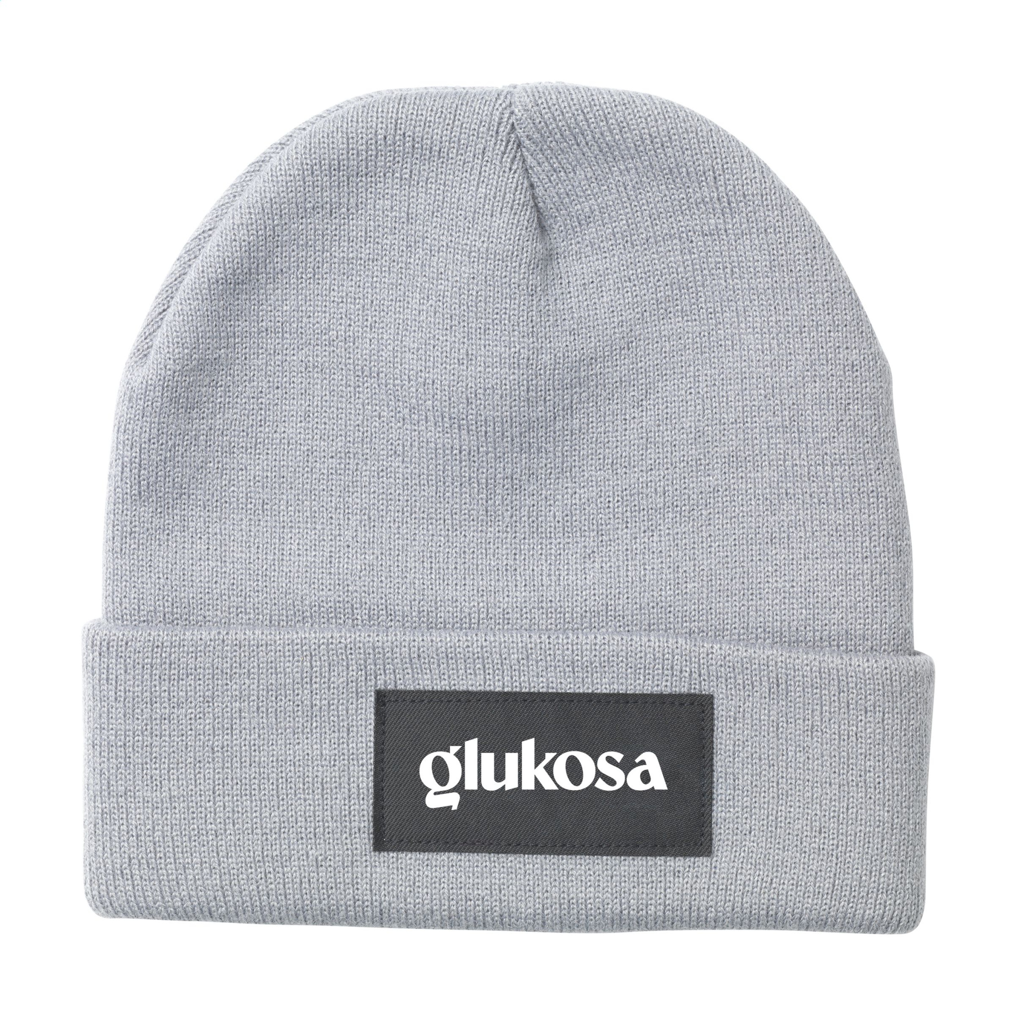 WoW! Knitted hat with fold over. Made from 100% RPET polyester. A popular item, keeps you nice and warm with good quality material. One-size. With black label for decoration. GRS-certified. Total recycled material: 100%.