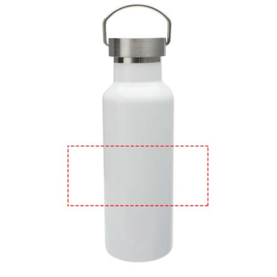 Crafted from durable, double-wall vacuum insulated RCS certified stainless steel, this water bottle is designed to keep drinks at the desired temperature for longer. A special exterior coating allows for sublimation printing, and it features a stainless steel screw-on lid with a strong handle loop for easy carrying. Volume capacity: 500 ml. Leak proof. Presented in a gift box.