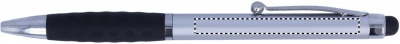 Stylus twist action ball pen in ABS with metallic finish and soft grip. Blue ink.