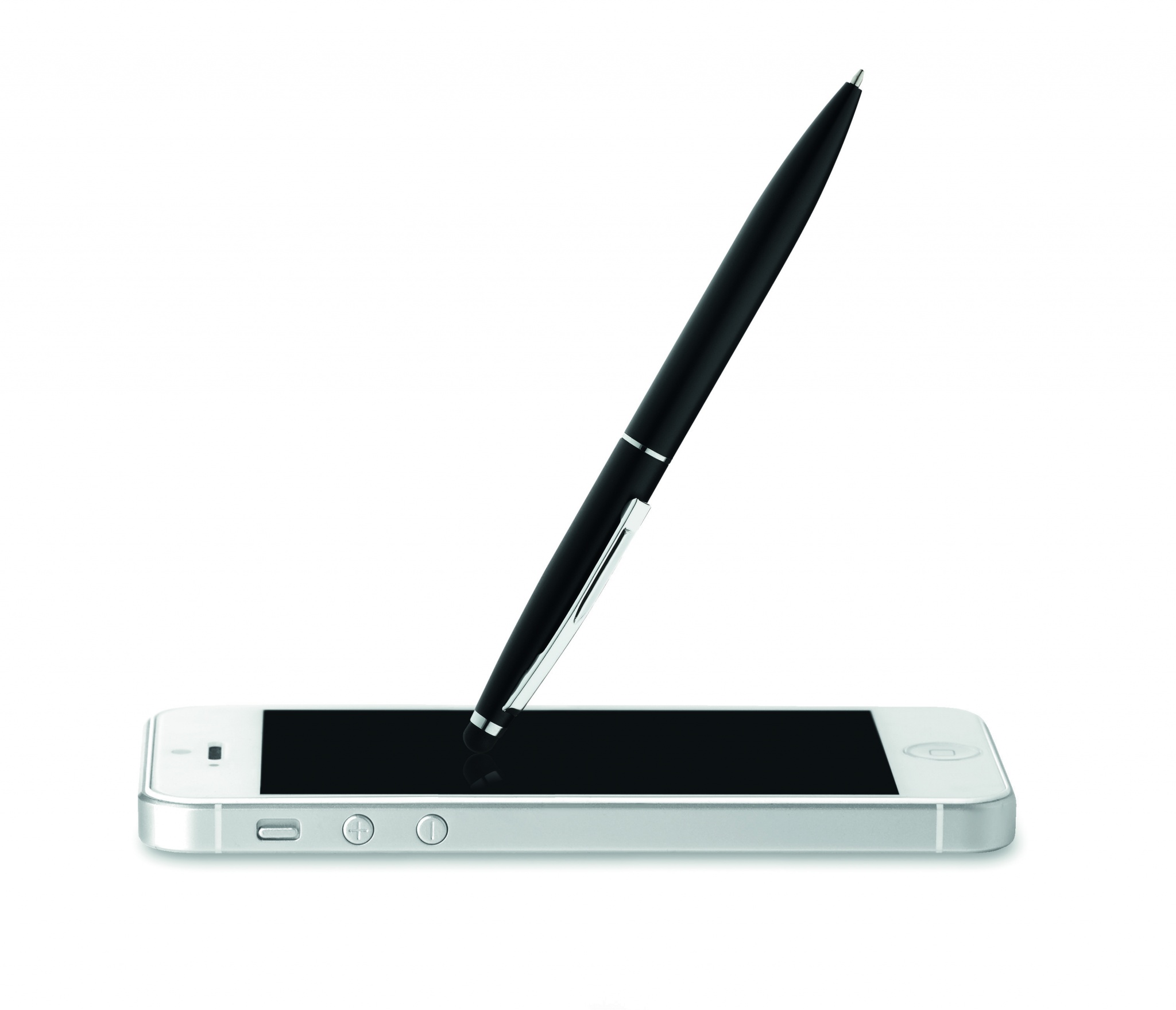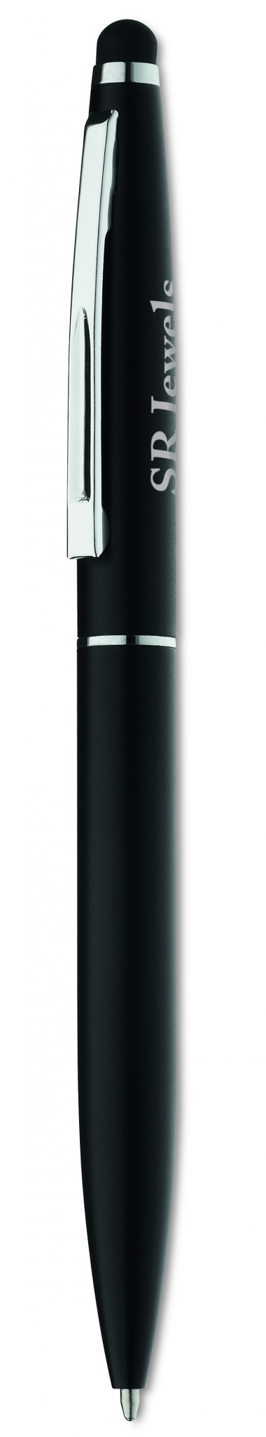 Twist action ball pen in aluminium with stylus and matt finish. Blue ink.