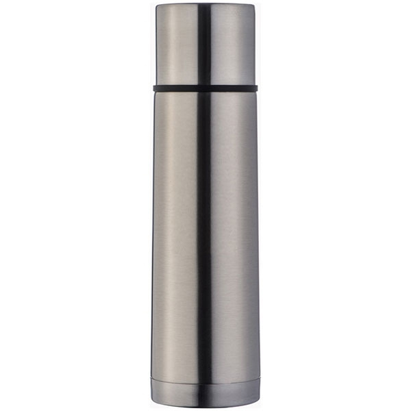 Stainless steel vacuum flask with 500ml filling capacity and integrated cup in the lid. Your logo will be engraved.