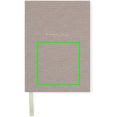 Start your journey today with the Thankfulness journal and witness the gradual transformation of your mindset over time. Capturing the beauty of everyday experiences and reflections. Its templated A5 pages, featuring specific questions and fill-in boxes, provide an effortless way to document your thoughts. With its timeless and elegant design, the notebook seamlessly complements any interior decor. Complete with a ribbon bookmark and a fabric cover. Certified by GRS (Global Recycled Standard), GRS certification guarantees that the entire supply chain of the recycled materials is certified. The total recycled content is based on the overall product weight. This product contains 73% GRS certified recycled paper.