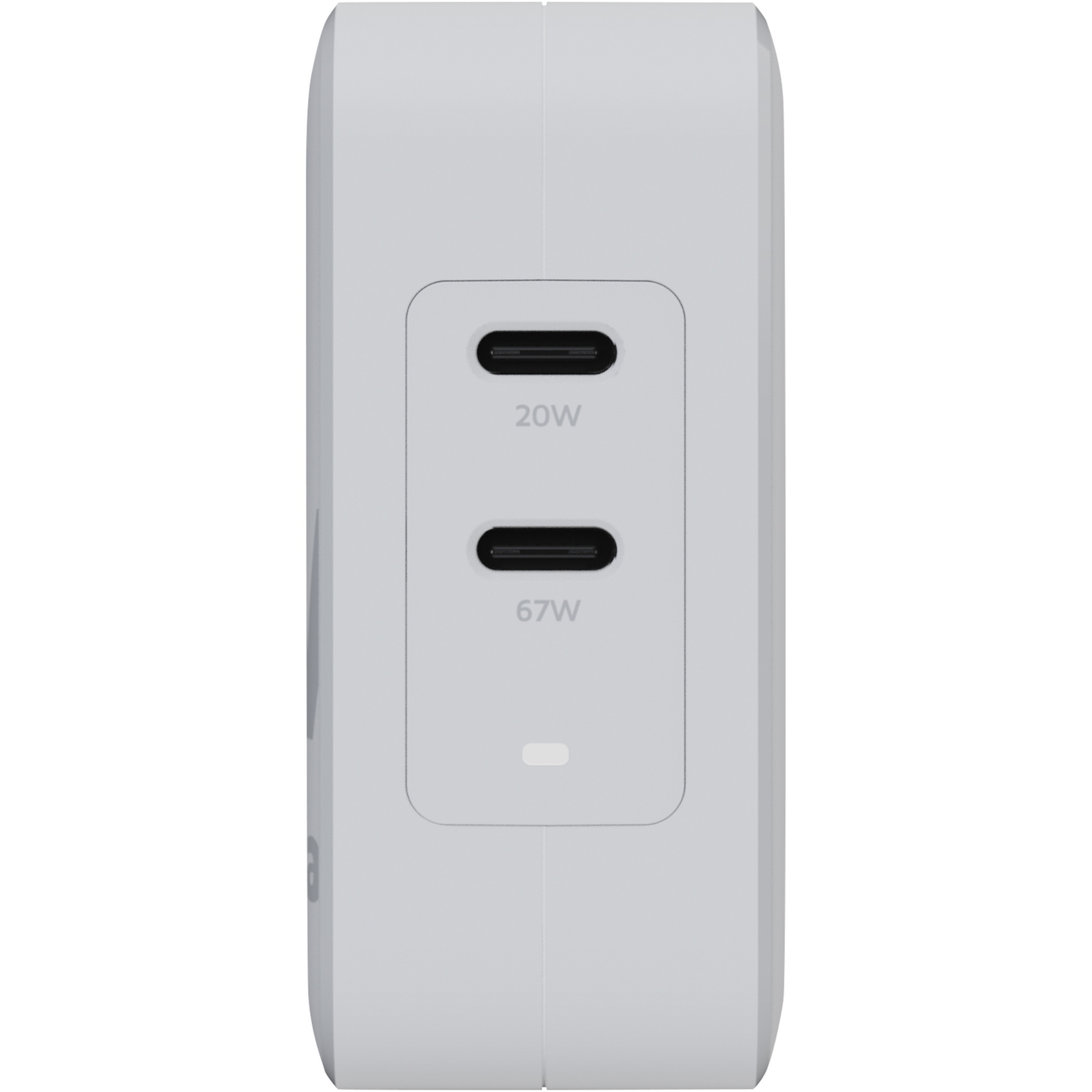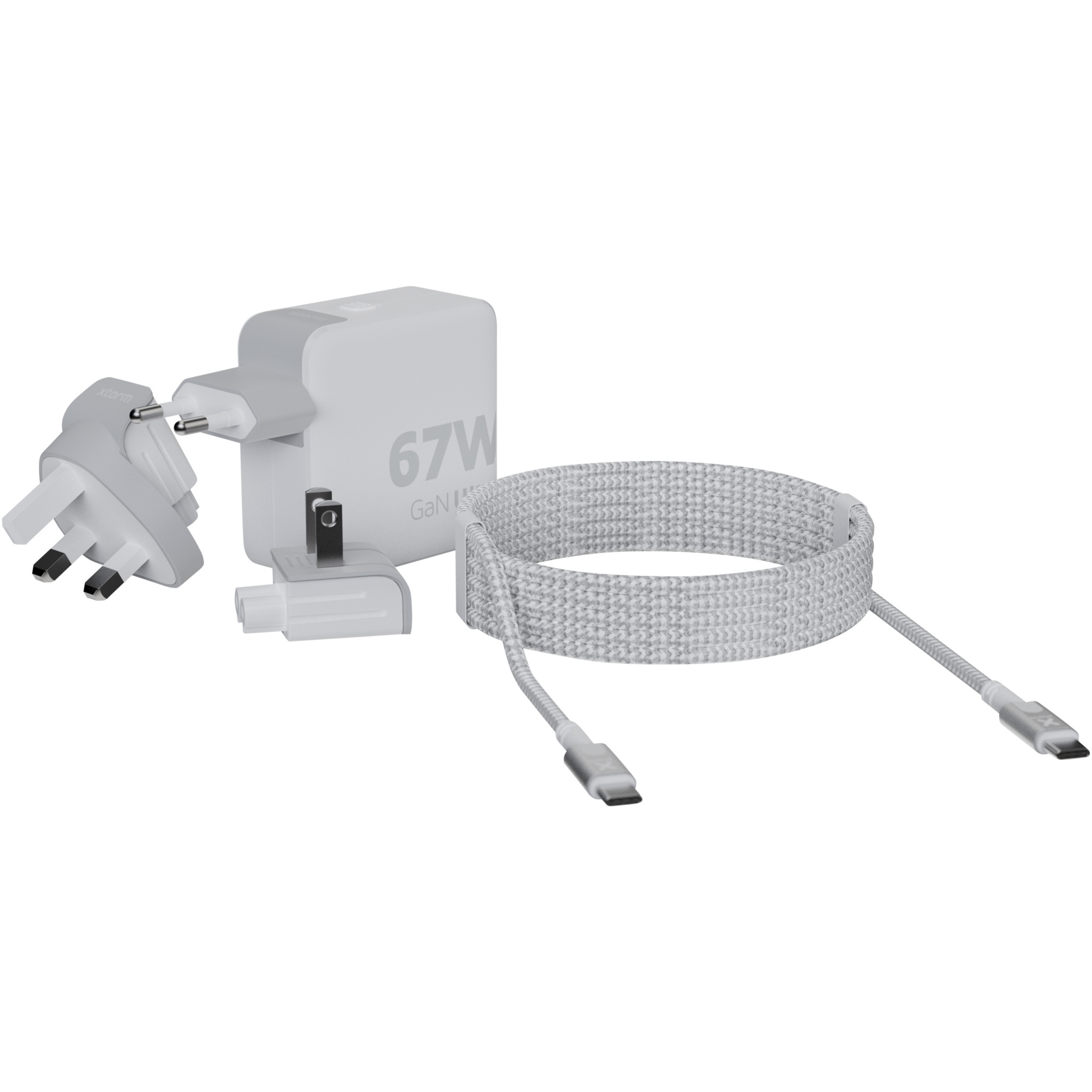 The 67W GaN Ultra travel charger is designed to be more compact and powerful than ever before. With its compact design and dual-port functionality, this travel charger is perfect for your travels, office, or home. With the included EU, UK, and US, AC plug options and the 100W USB-C PD cable (2 metres), you have everything you need to charge your devices all over the world!