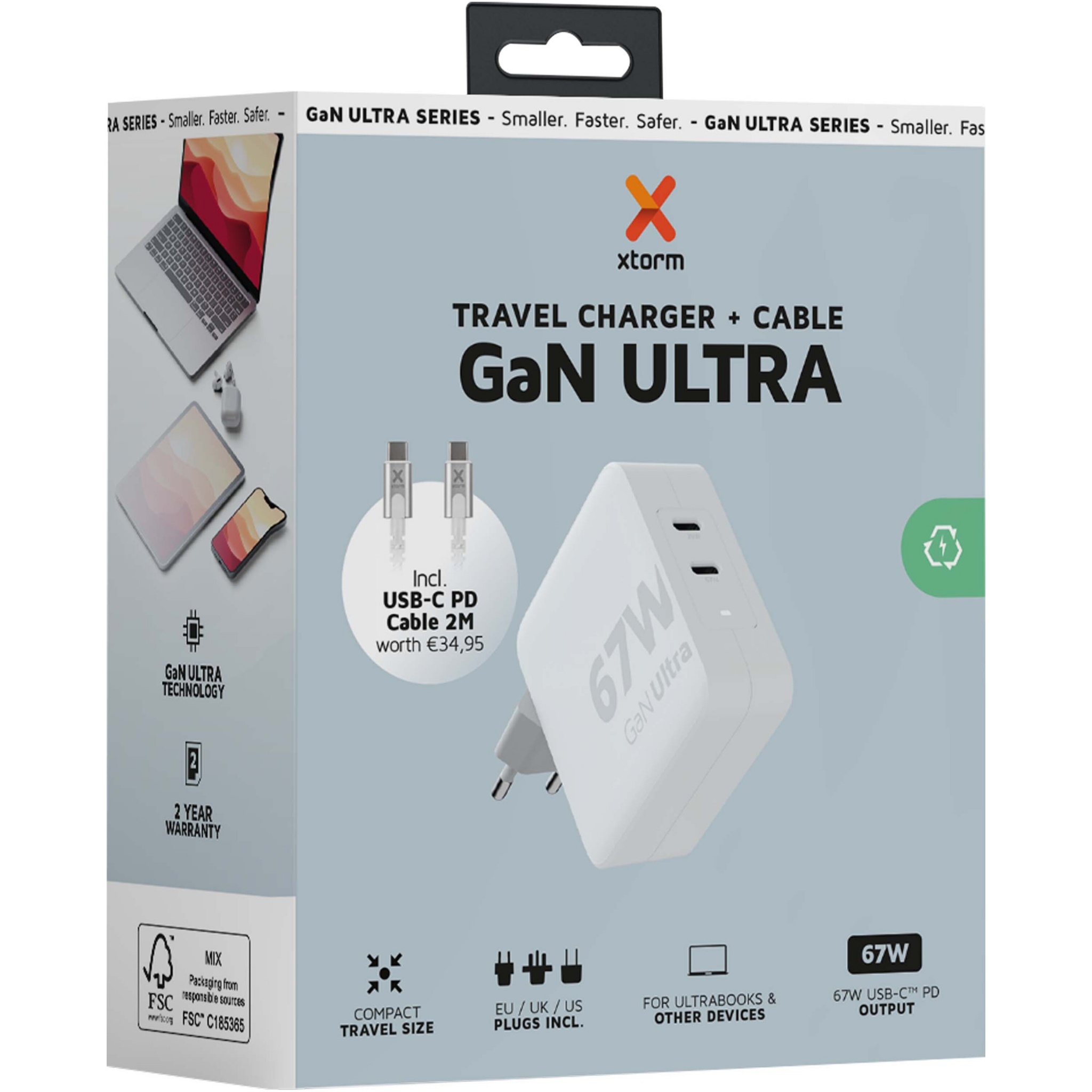 Xtorm XVC2067 GaN Ultra 67W travel charger with 100W USB-C PD cable, White