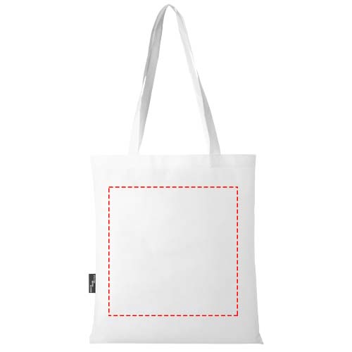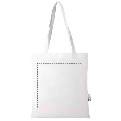 Made from durable and tear resistant RPET, the Zeus GRS recycled large tote bag is a perfect and more sustainable option for fairs or conferences. Its slim design makes it an elegant model and suitable for carrying lightweight items like a notebook and a pen. The handles are 29 cm long and therefore the tote bag is easy to carry over the shoulder. Resistance up to 5 kg weight.