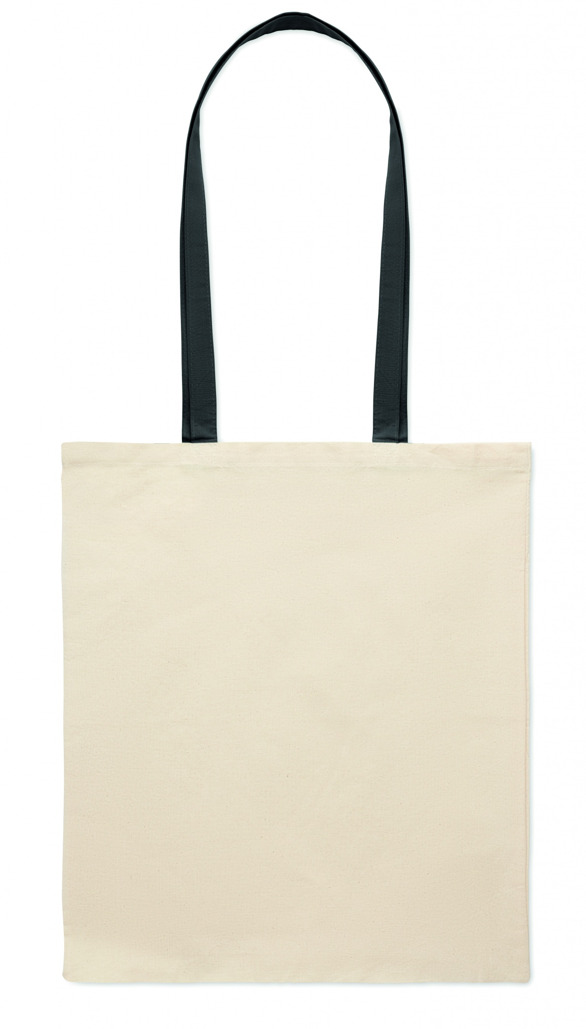 Puuvillane värviliste pikkade sangadega poekott. 140 gr/m².