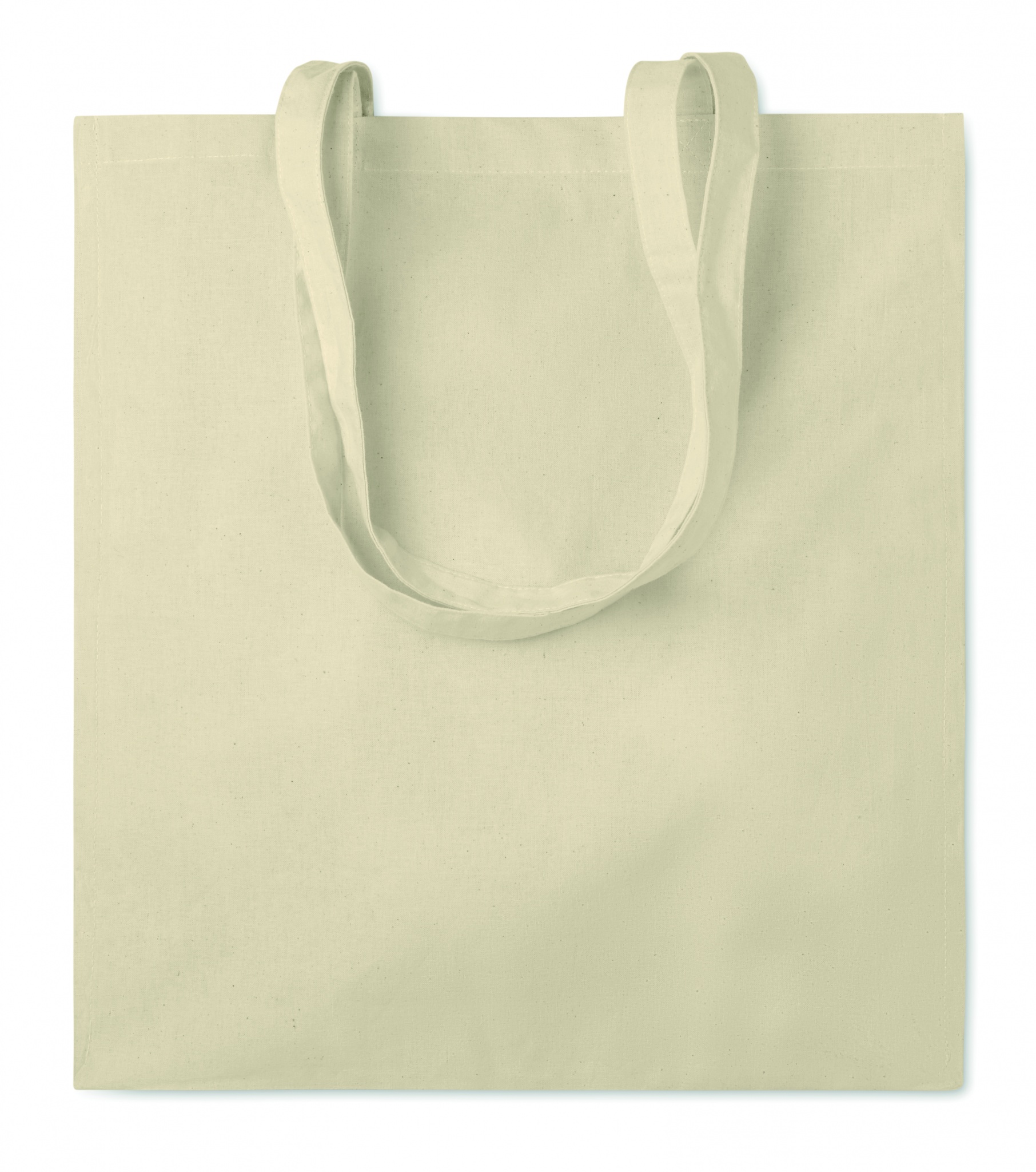 Puuvillane pikkade sangade ja kinnitustega poekott. 140 gr/m².