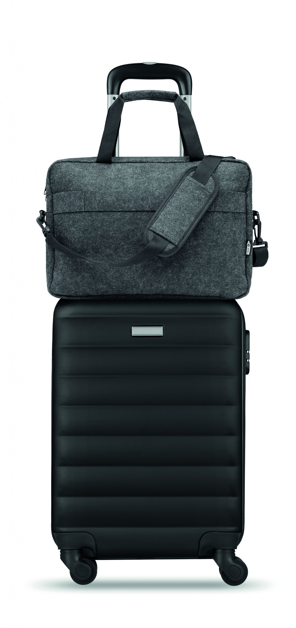 15-tolline RPET-vildist sülearvutikott, millel on üks peamine sisemine sahtel ja üks lukuga esitasku. Kaasas eemaldatav ja reguleeritav õlarihm. Käru hoidik tagaküljel.