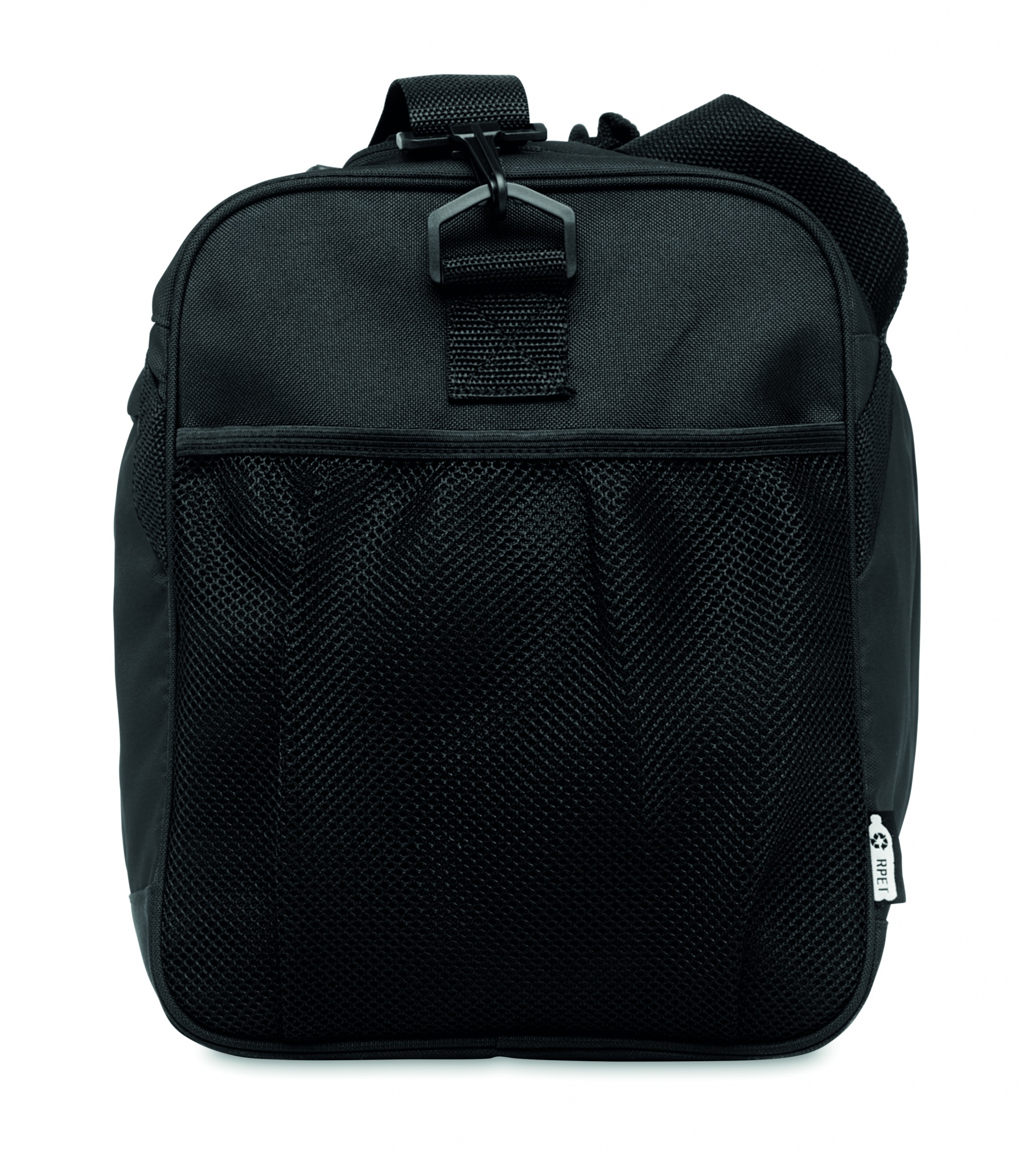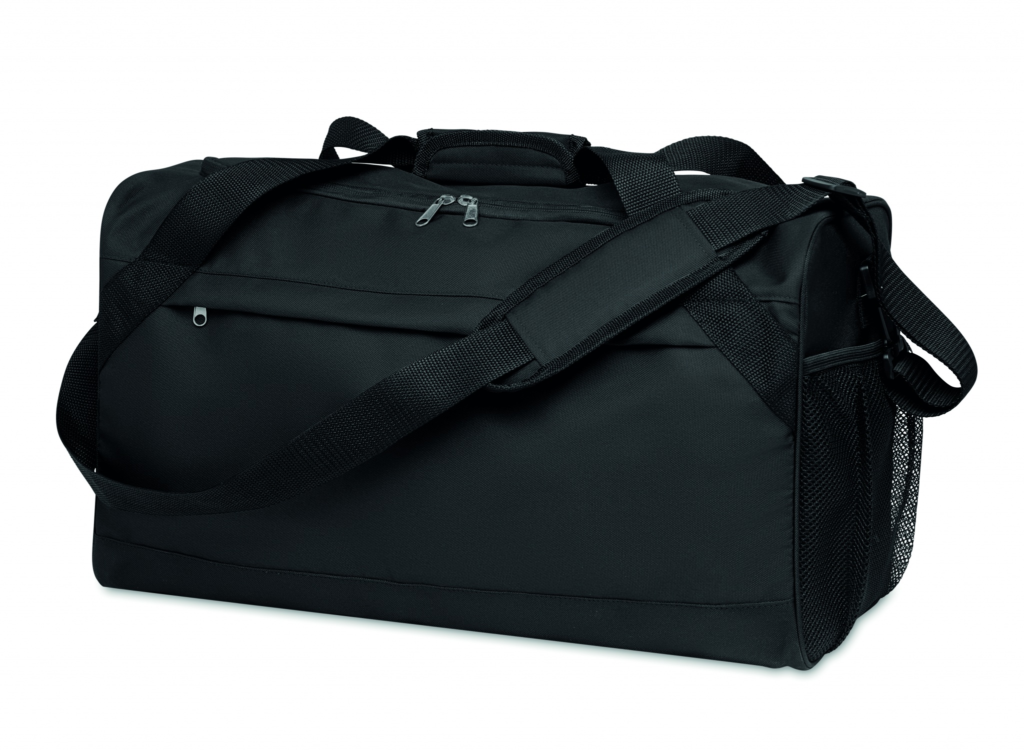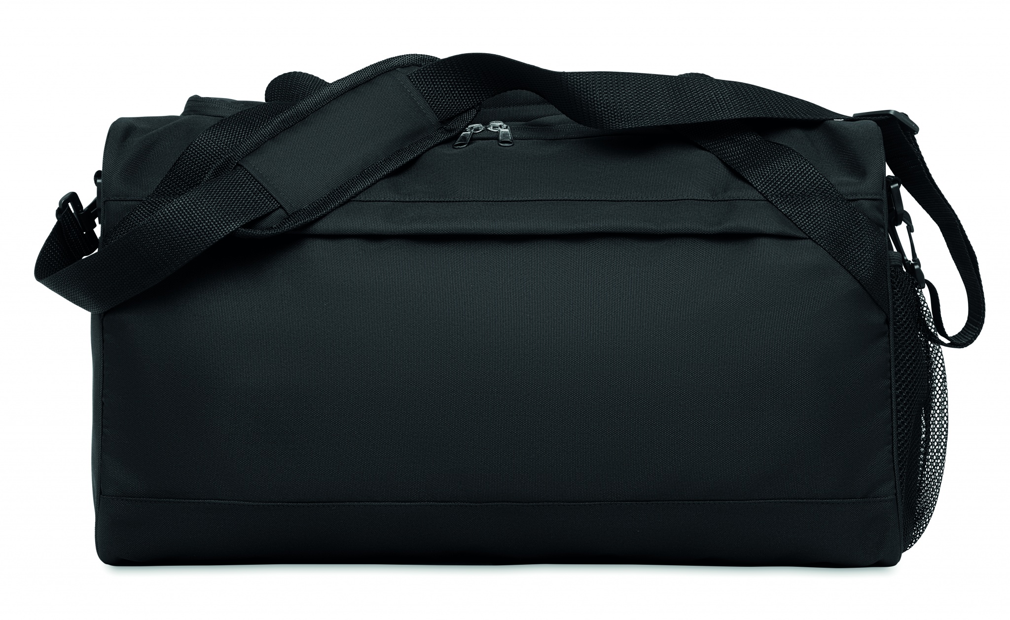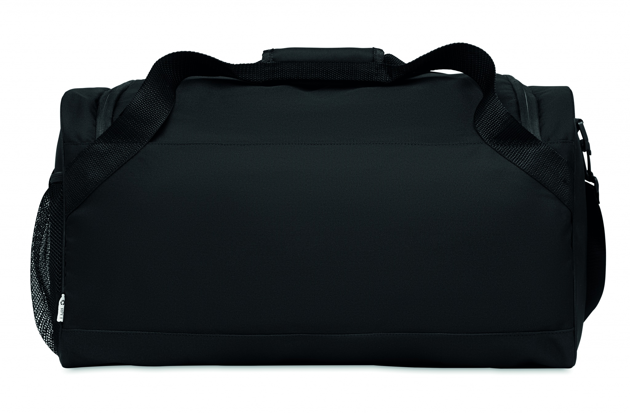 Spordi- või reisikott 600D RPET-ist suure lukuga esitasku, lukuga sisetasku ning reguleeritava ja eemaldatava õlarihmaga.