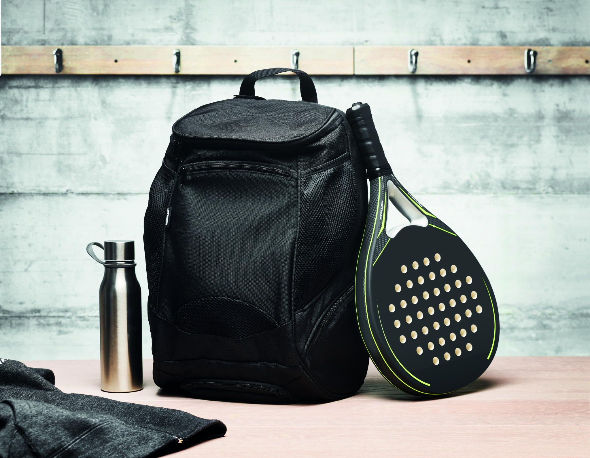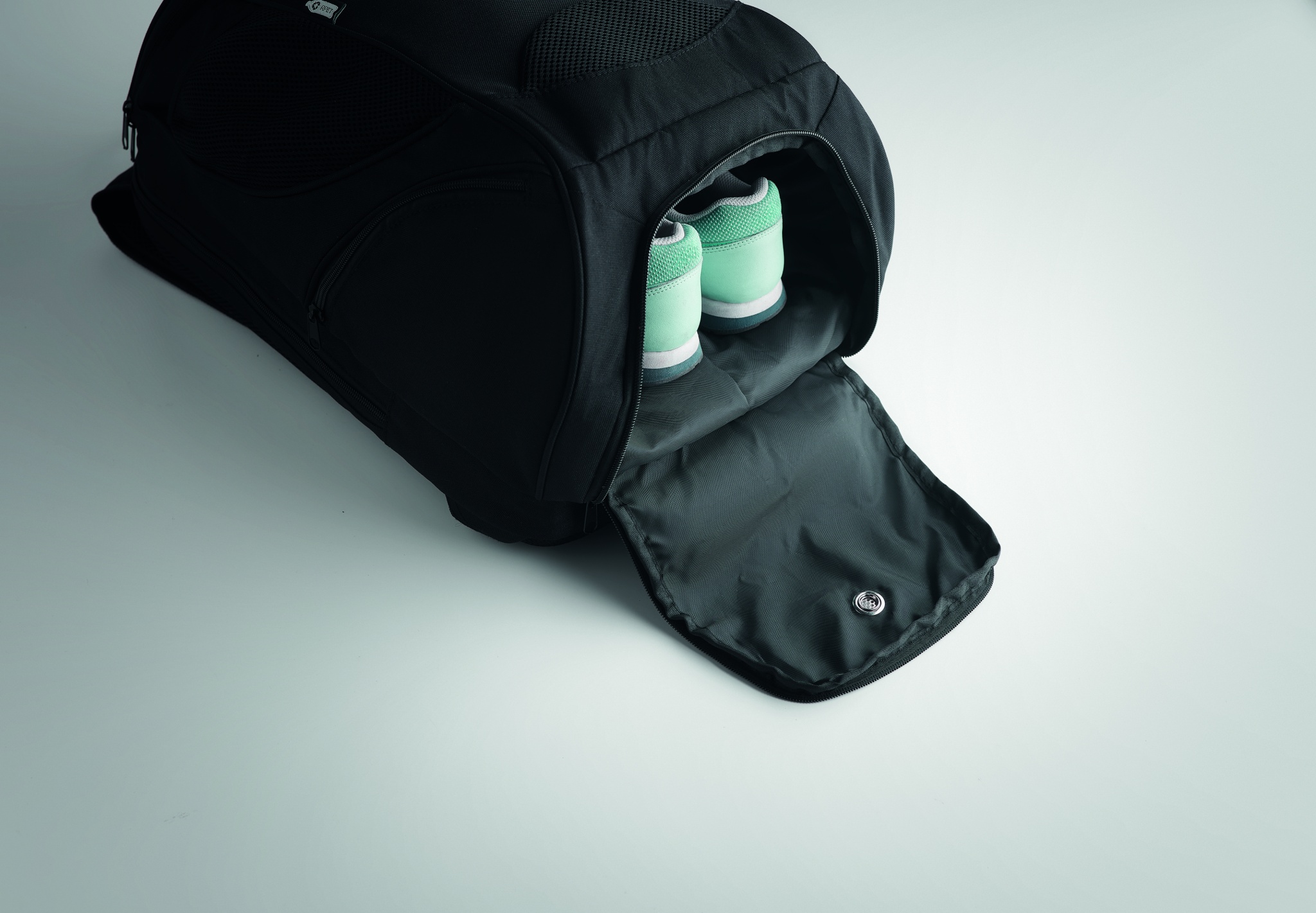 Multifunktsionaalne 600D RPET spordiseljakott mitme lahtriga (sh polsterdatud sahtel aereketi jaoks). Kaasas reguleeritav õlarihm.