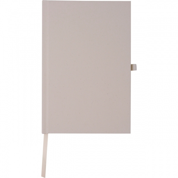 A5 märkmik kookospähklikoortest kaane ja 160 taaskasutatud paberist lehega. Märkmikul on ka järjehoidja ja pliiatsiaas.
