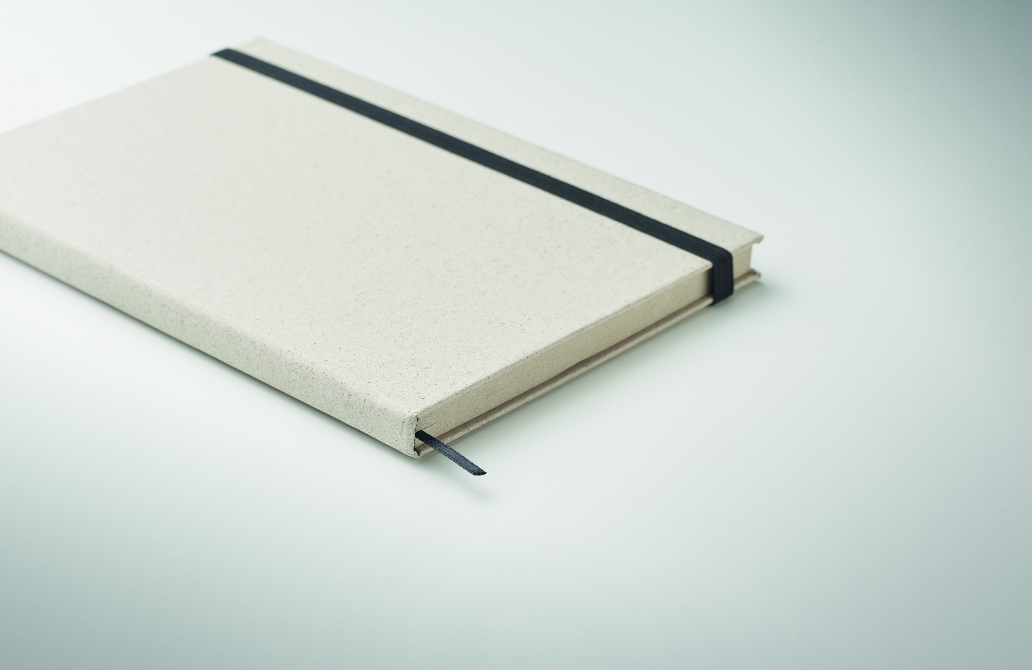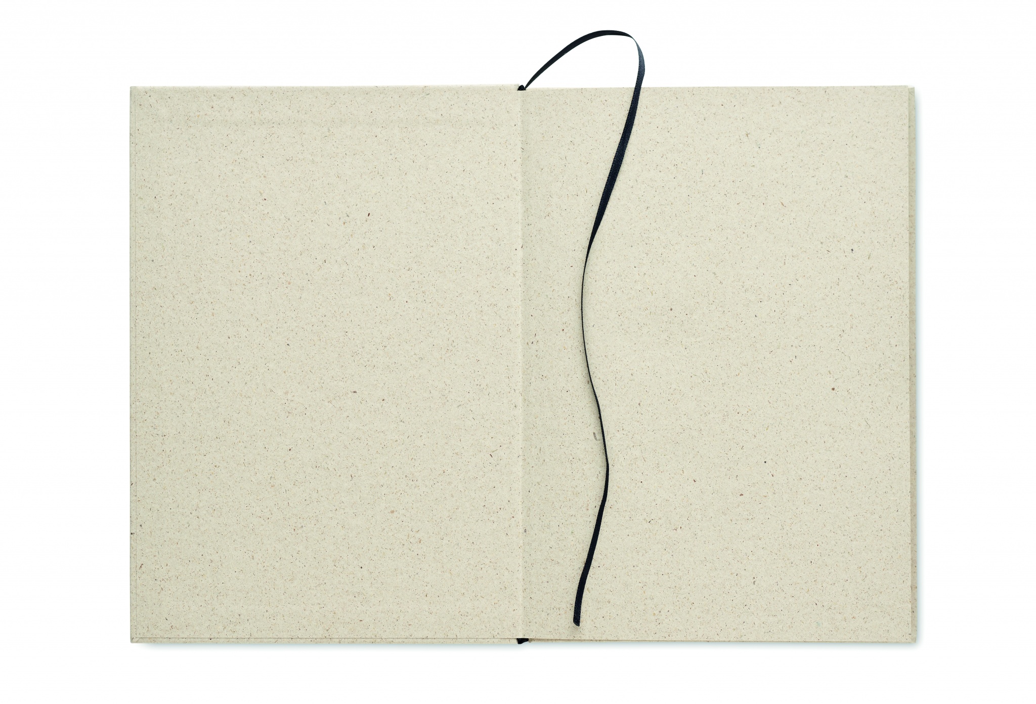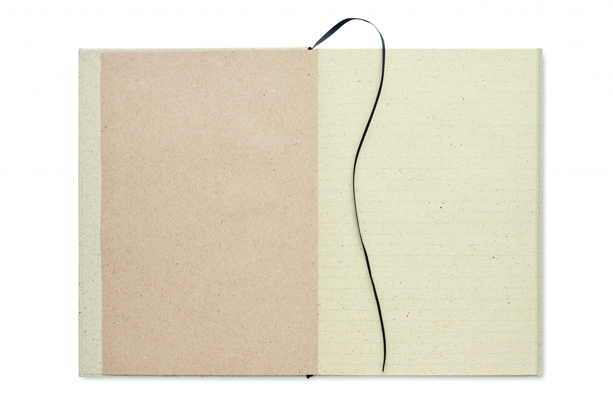 A5 murupaberist märkmik. Kõva murupaberist kate. Casebound. 160 murupaberiga vooderdatud lehte (80 lehte). 95 gsm paber. Elastne sulgemisrihm ja lindiga järjehoidja. 40% murukiude sisaldav murupaber.