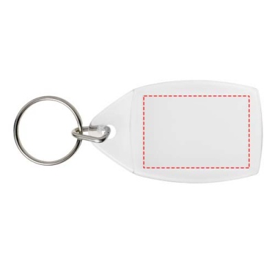 Läbipaistev P5 võtmehoidja metallist poolitatud võtmehoidjaga. Trükilehe mõõdud: 3,5 cm x 2,4 cm.