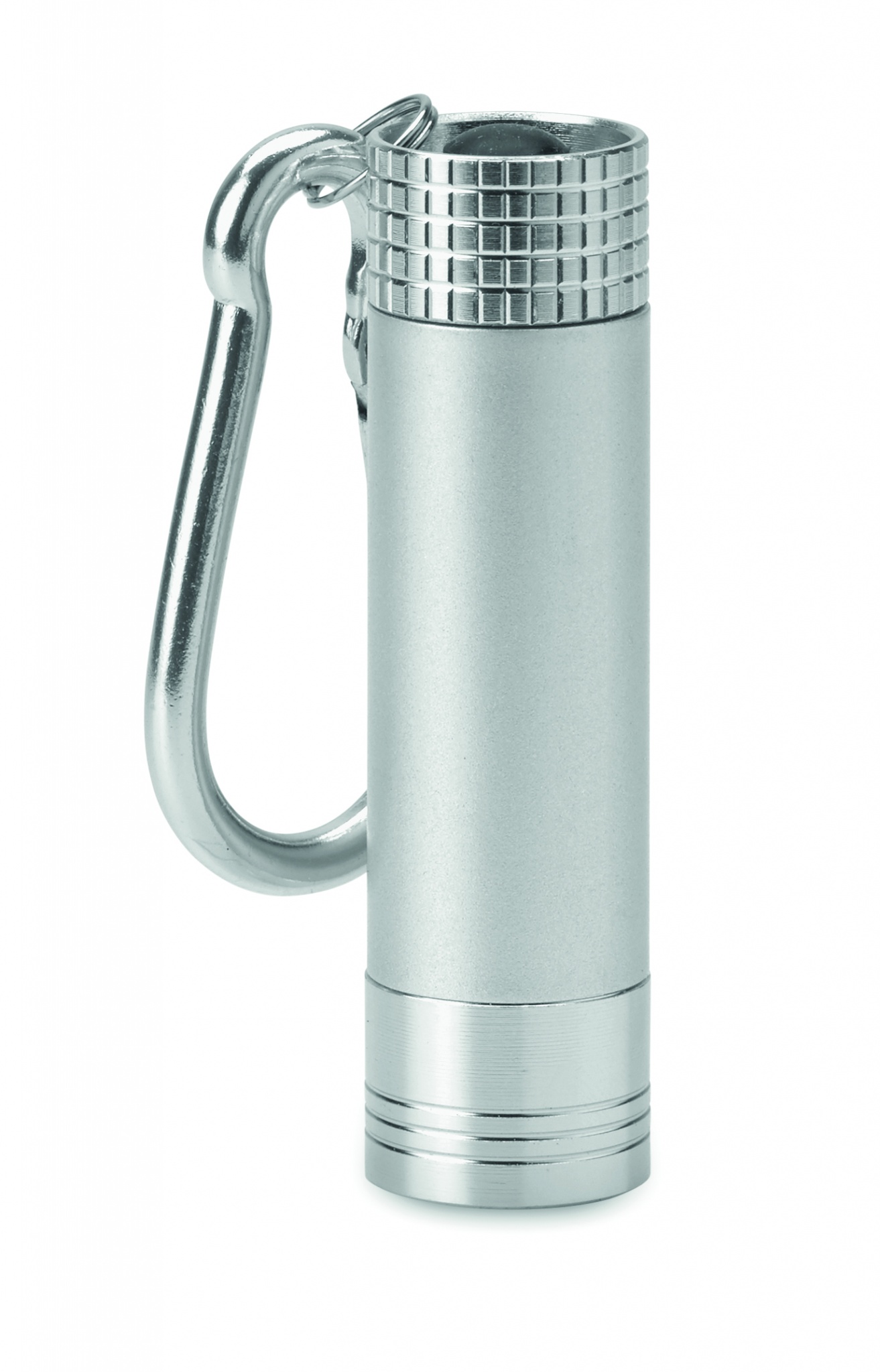 Minialumiinium ja ABS LED võtmehoidja. Logo saab lasergraveerida ja valgus valgustab logo. Kaasas 4 LR44 patareid.