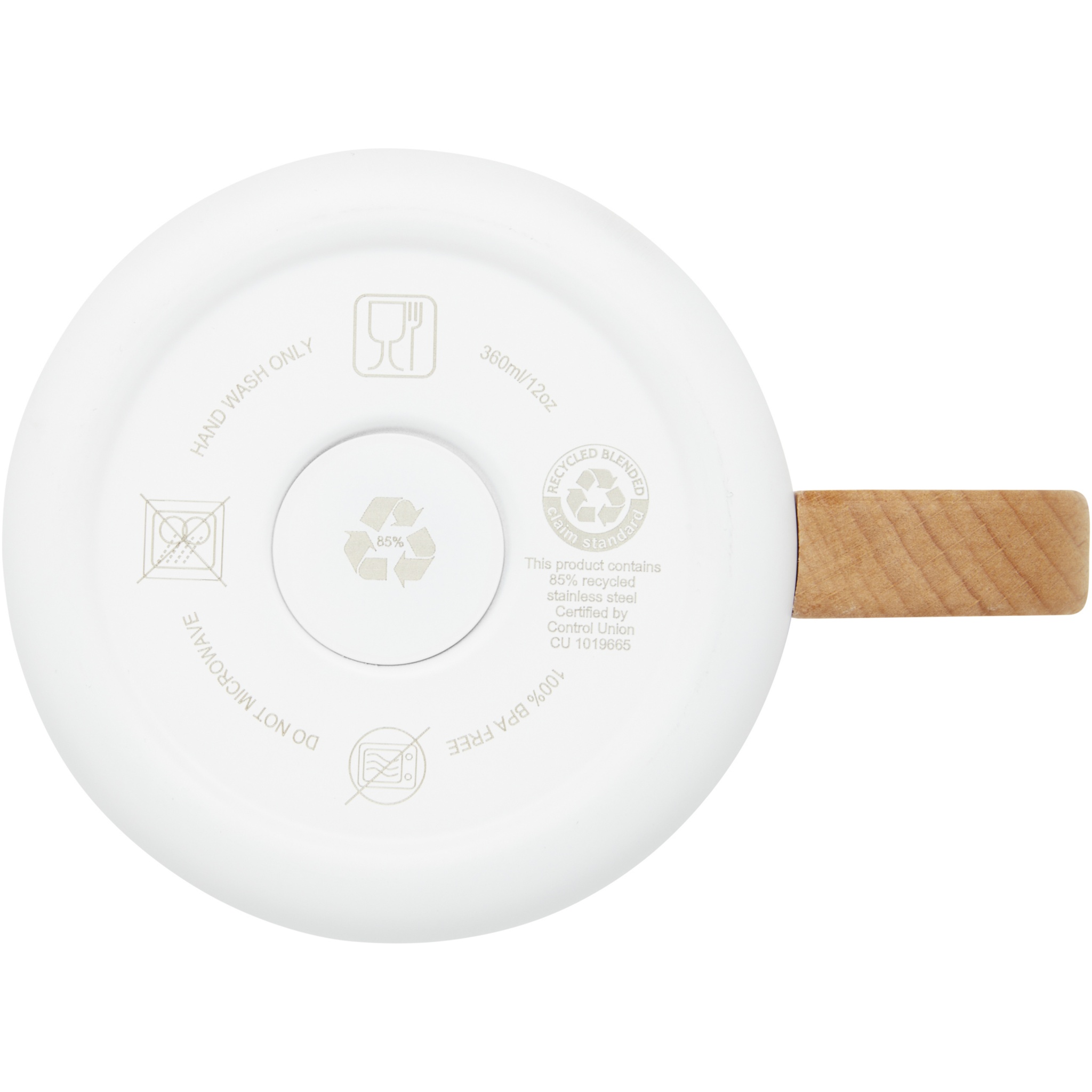 Bjorn 360 ml RCS sertifikaadiga taaskasutatud roostevabast terasest kruus vasest vaakumisolatsiooniga, Valge