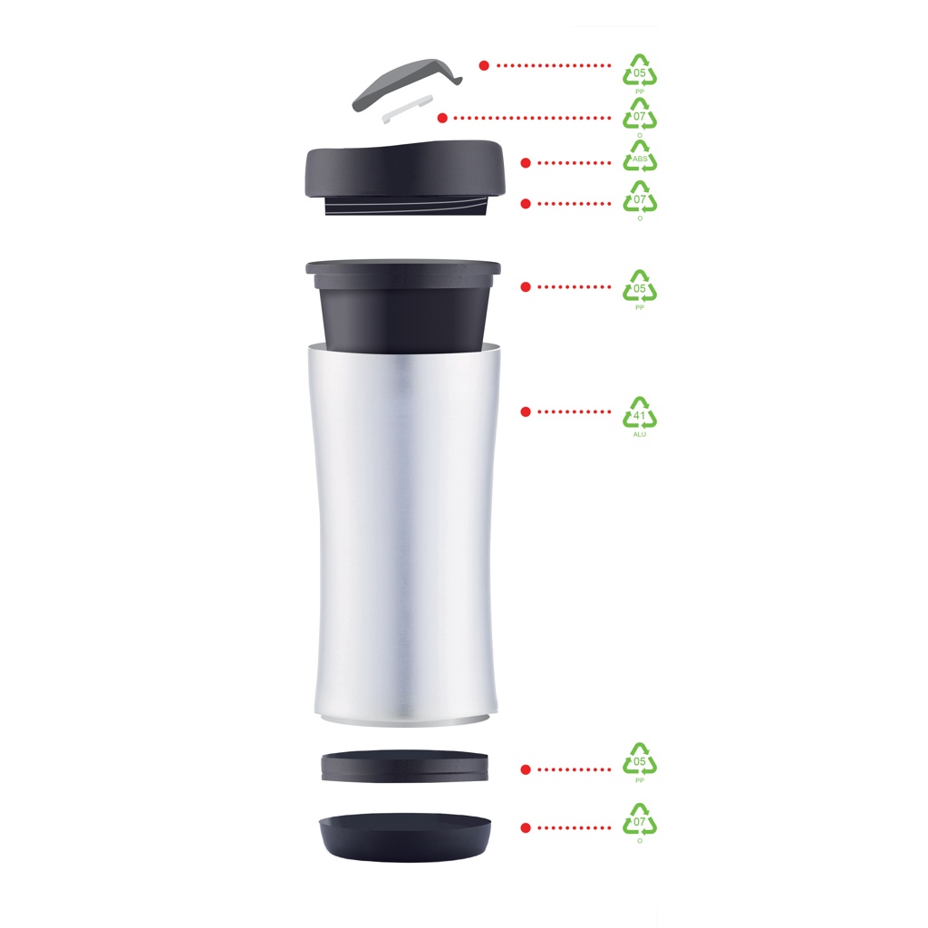 Boom on 225 ml lekkekindel kahekordse seinaga reisikruus kuumade või külmade jookide jaoks liikvel olles. Kõige üllatavam omadus on see, et see on loodud elutsükli lõpus ringlussevõtuks täielikult demonteerimiseks. Näidake oma pühendumust puhtama maailma nimel iga osa lahti võtmise ja ümbertöötlemisega. Registreeritud disain®