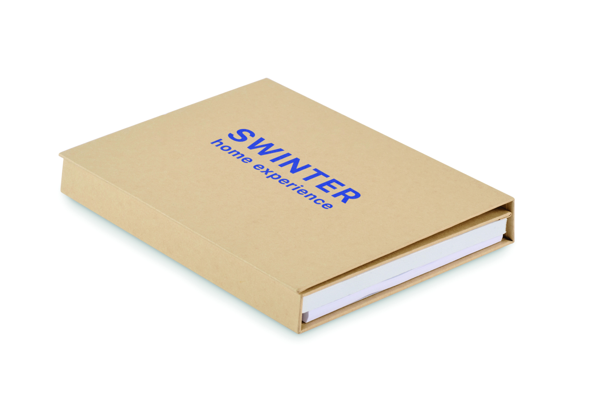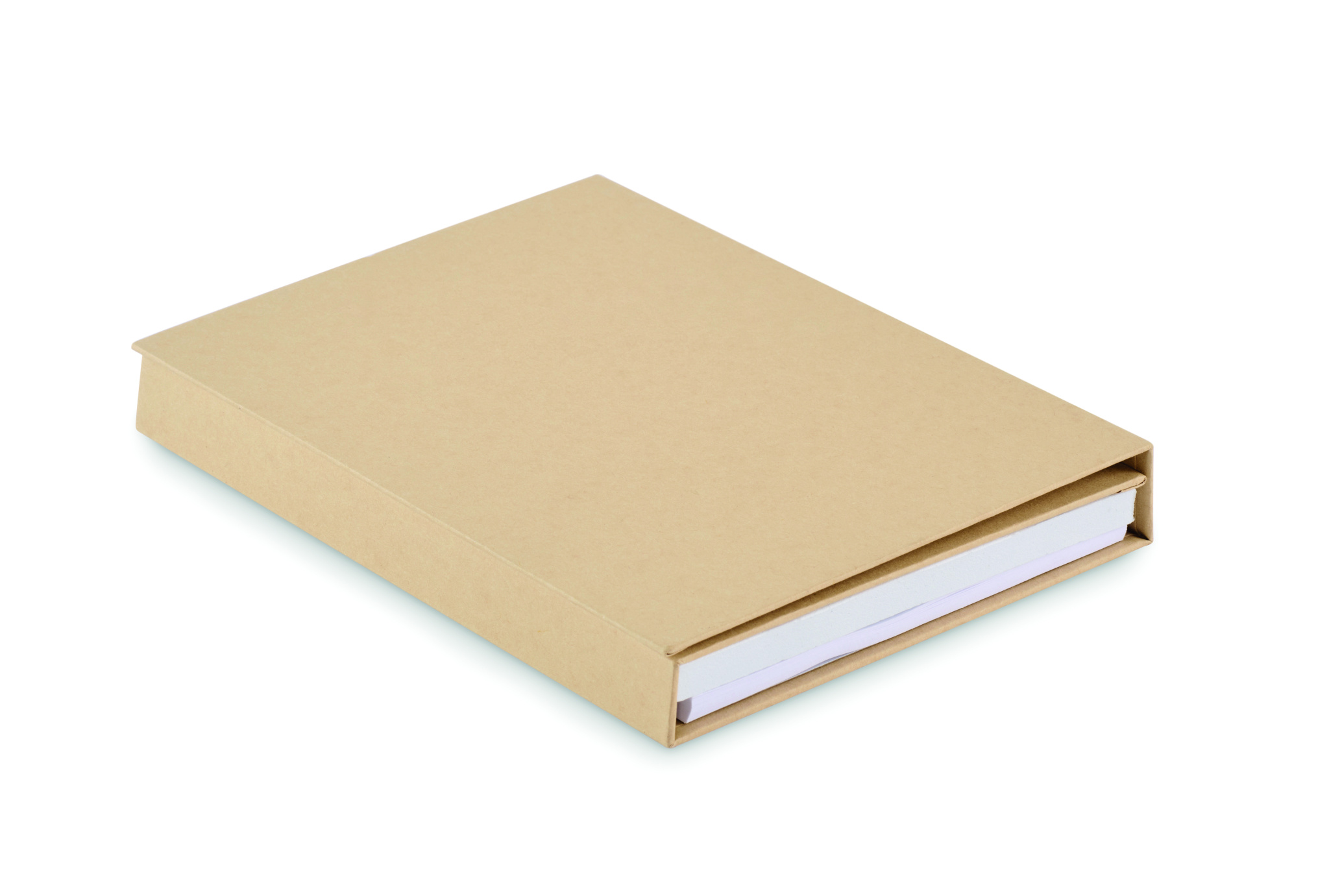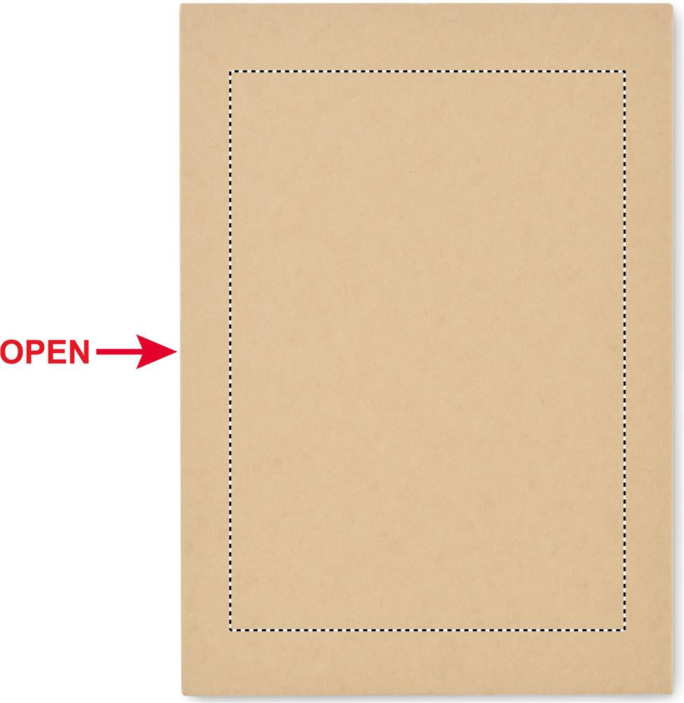 Märkmikukomplekt taaskasutatud pappkaanega. 70 taaskasutatud paberilehte. Kleepuvad märkmepaberid. Pastapliiats paberist silindri ja ABS osadega, ABS teritaja, 2 puidust pliiatsit, 15 cm puidust joonlauda ja PP nurgamõõtja.