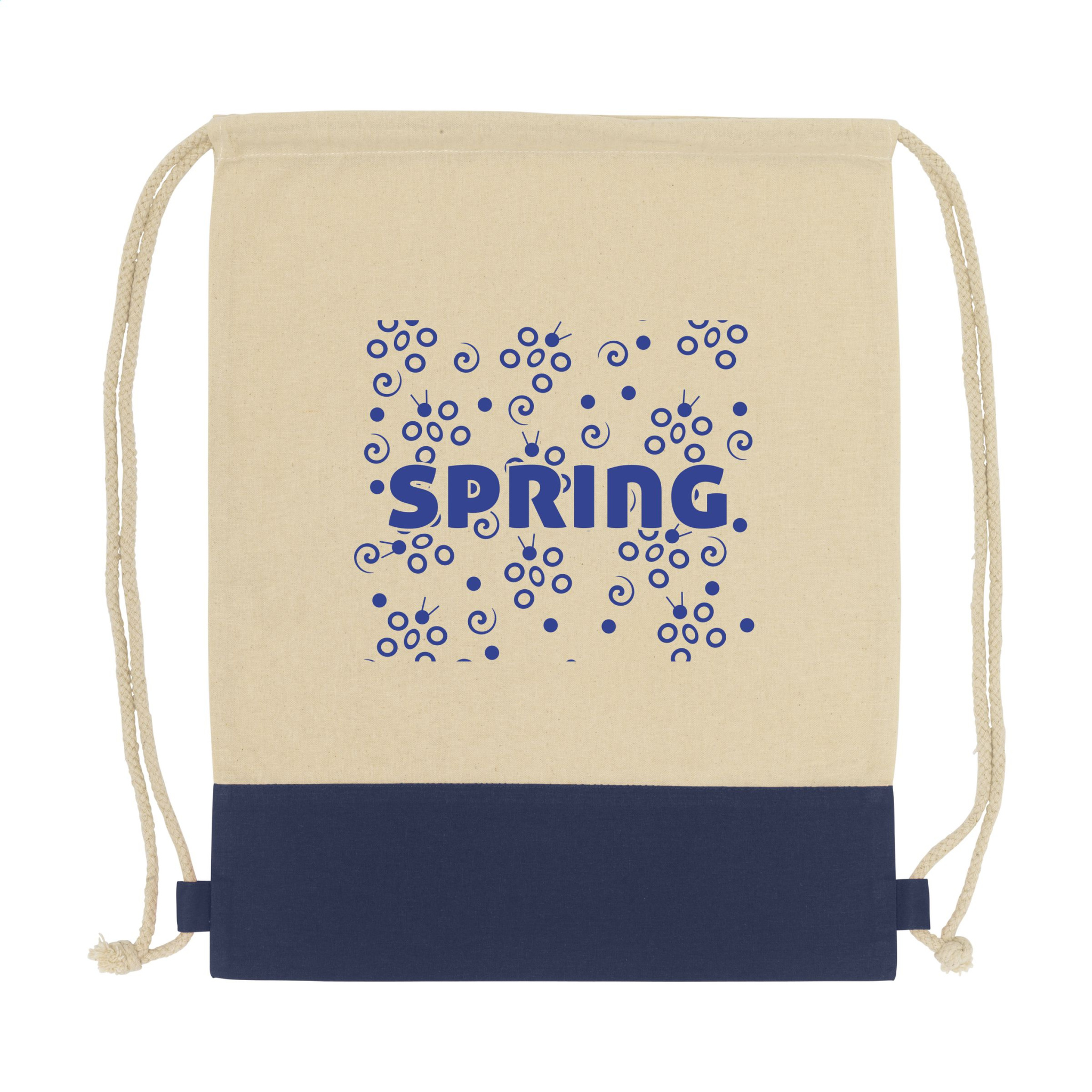 Seljakott 100% puuvillast (125 g/m²) pingutusnööridega ja värvilise sisekujundusega. Mahutavus ca. 8 liitrit.