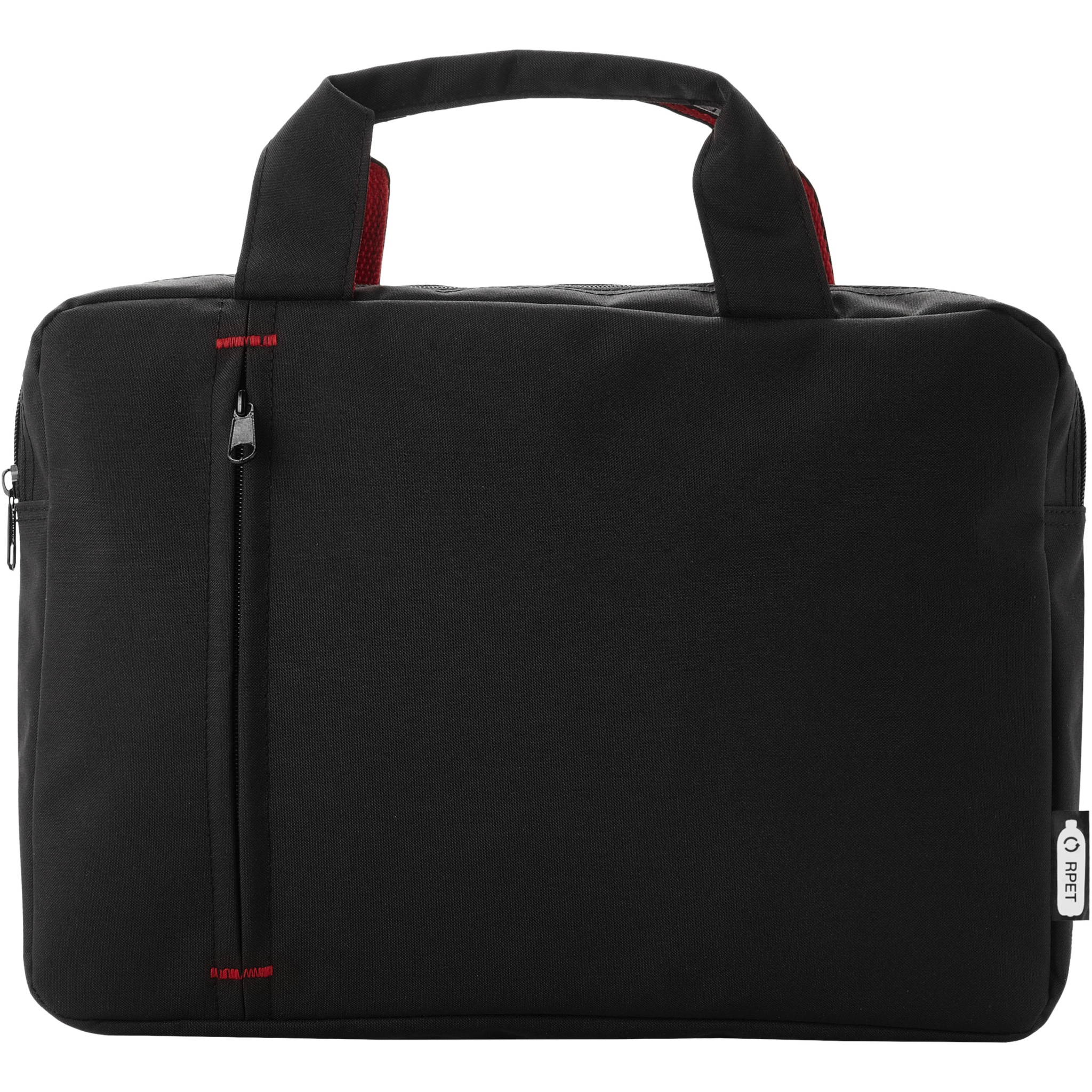 Taaskasutatud PET-plastikust konverentsikott, millel on lukuga põhisahtel ja eesmine lukuga tasku, tugevdatud ülemised kandesangad ja trendikad värvikontrastelemendid.