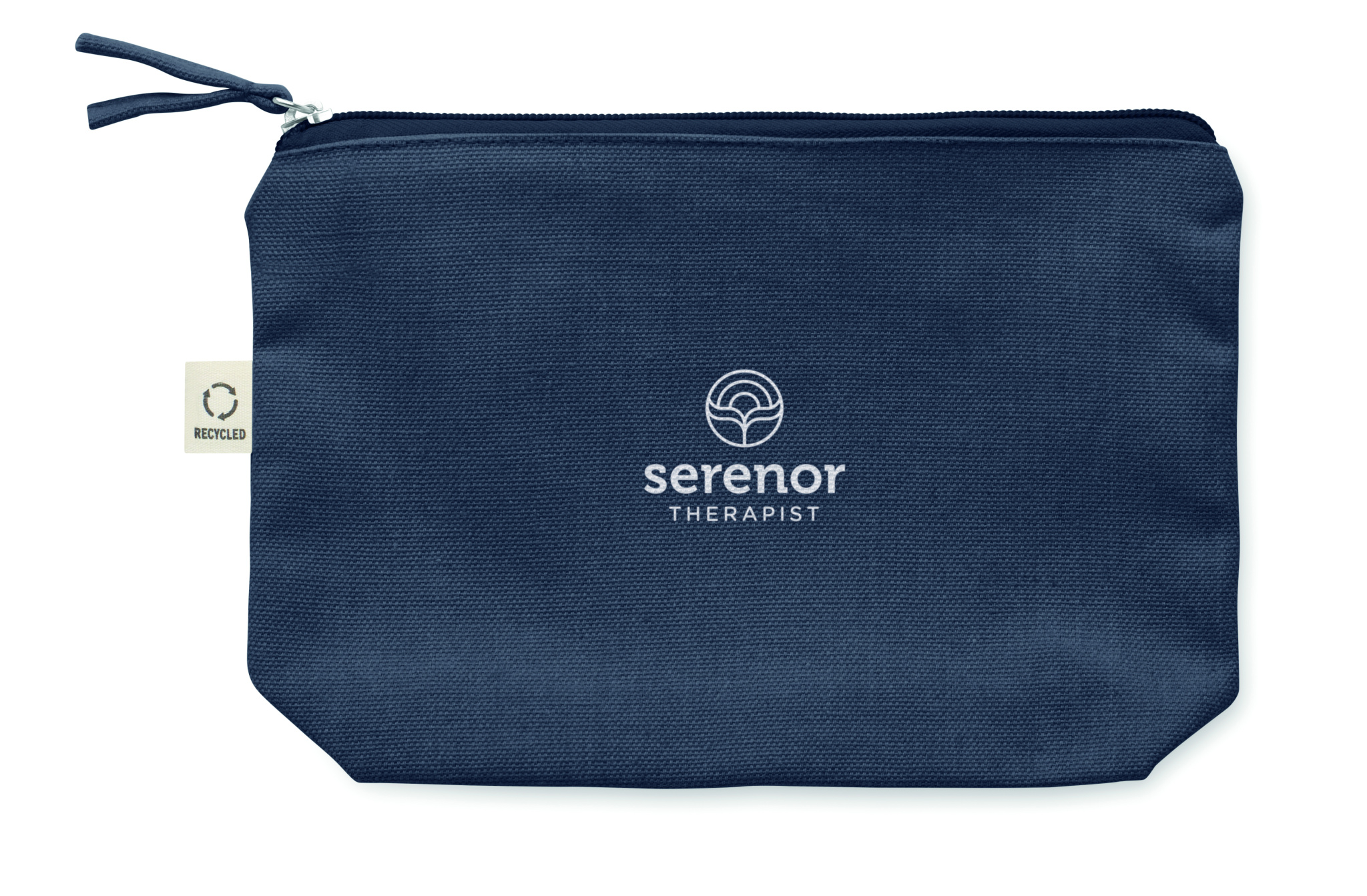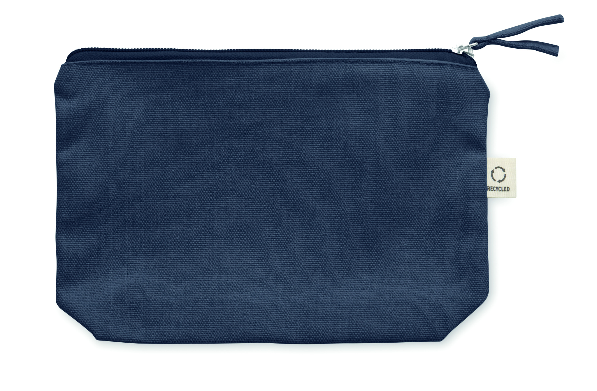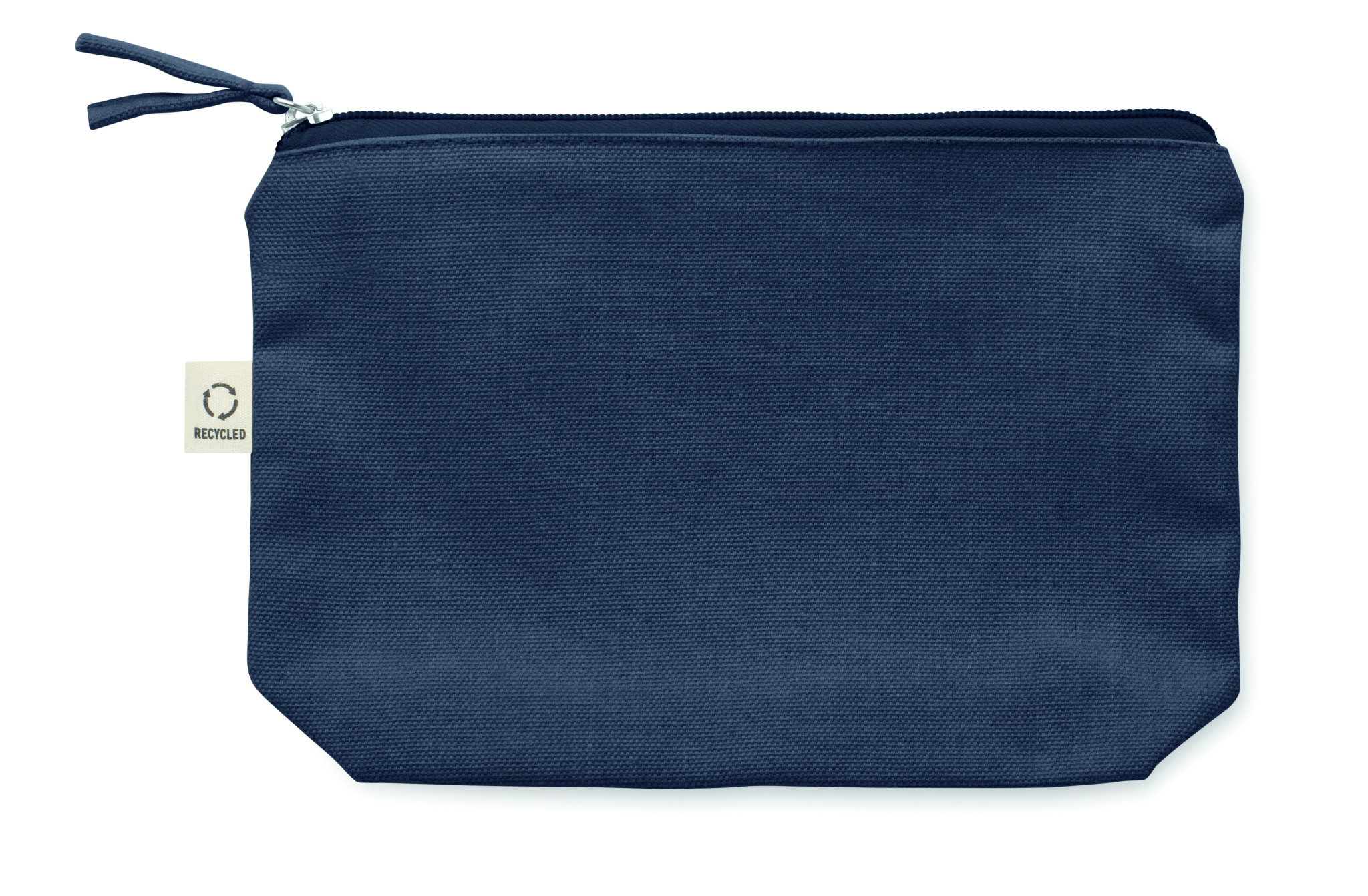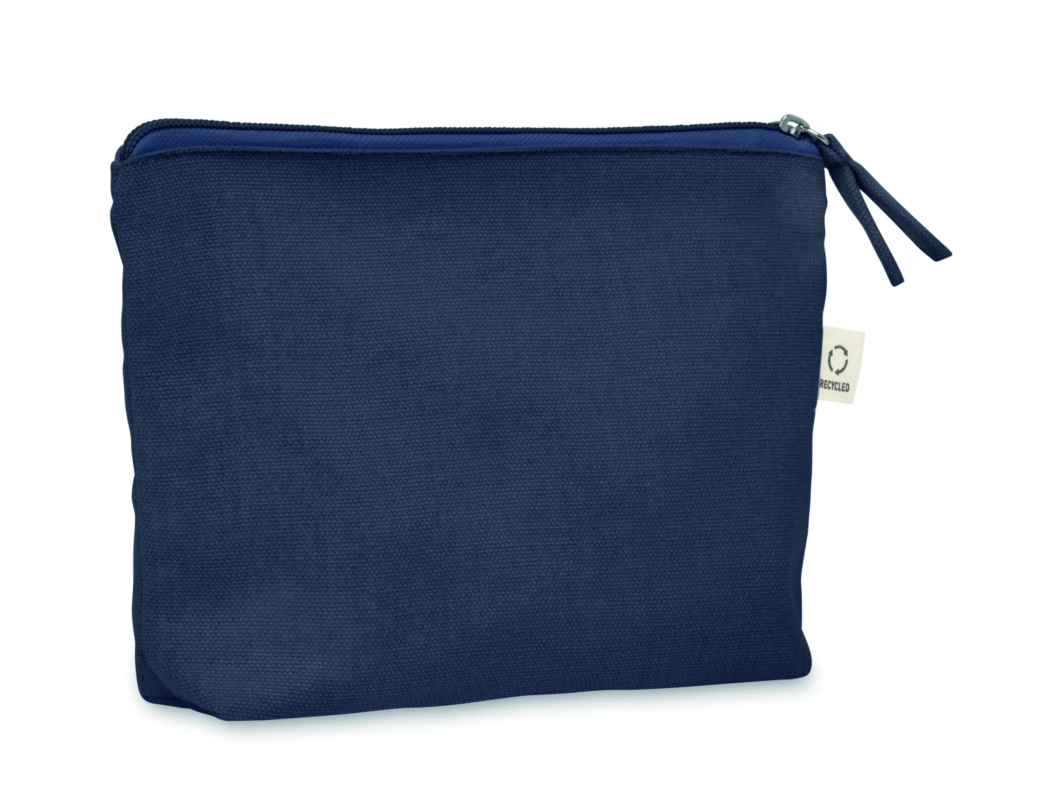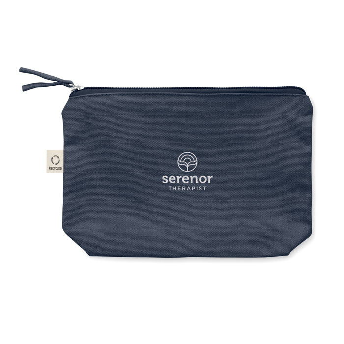 Kosmeetika- ja/või tarvikute kott taaskasutatud kangast (70% taaskasutatud puuvill ja 30% RPET polüester) koos sobiva tõmblukuga. 320 gr/m².