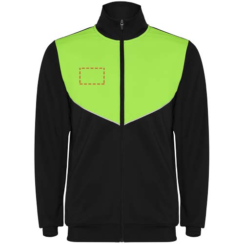 Kergest ja elastsest kangast dressid. Kontrastset värvi ja õmblemisäärtega jakk rinnal. Kõrge krae kontrastsete õmblustega. Kesk ees tõmblukk. Küljetaskud. 2x2 soonik käised ja vöökoht. Elastse vöökoha ja pingutusnööriga püksid. Kontrastne õmblusdetailidega küljeosa. Lukuga alläär.