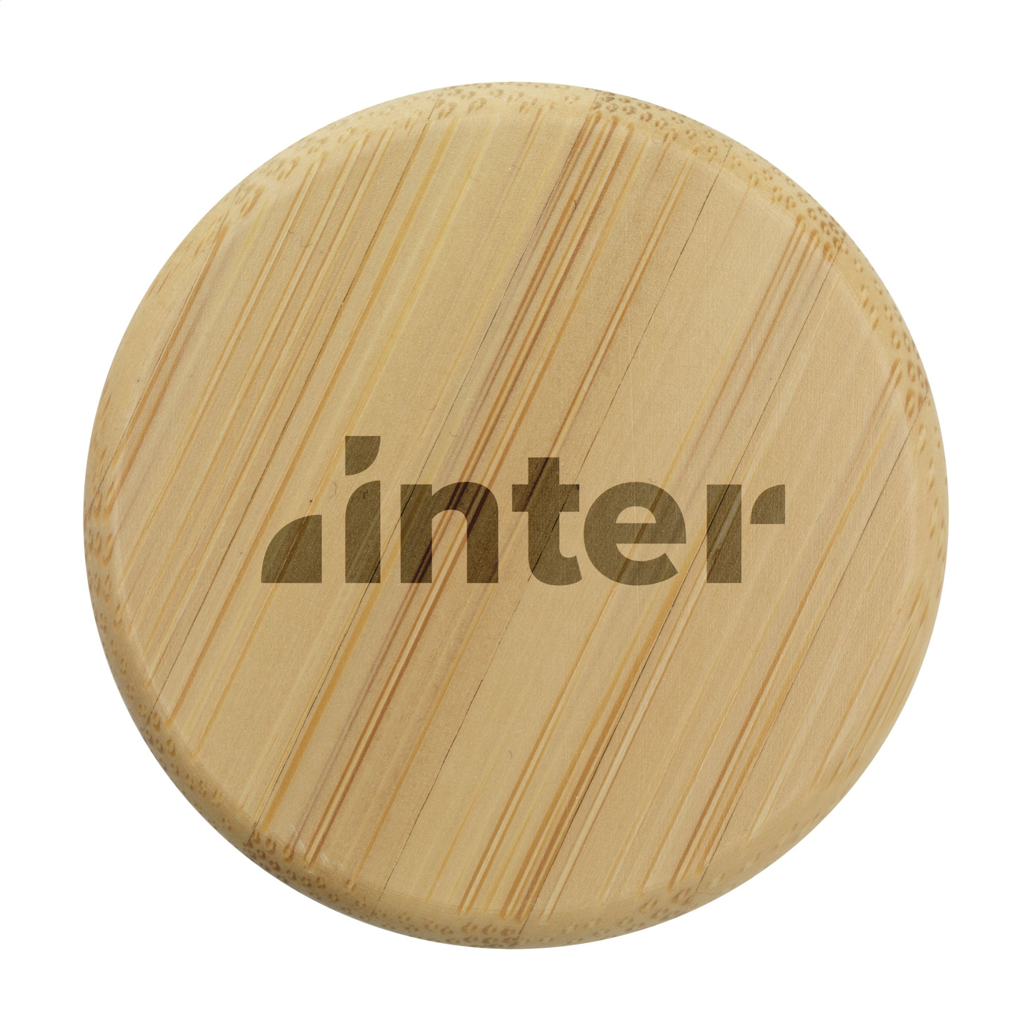 Kvaliteetsest kuumakindlast boorsilikaatklaasist joogipudel. Sellel pudelil on värviline jäätunud kate. Tarnitakse bambusest keeratava korgiga. Lekkekindel. Mahutavus 550 ml. Iga toode tarnitakse eraldi pruunis pappkarbis.