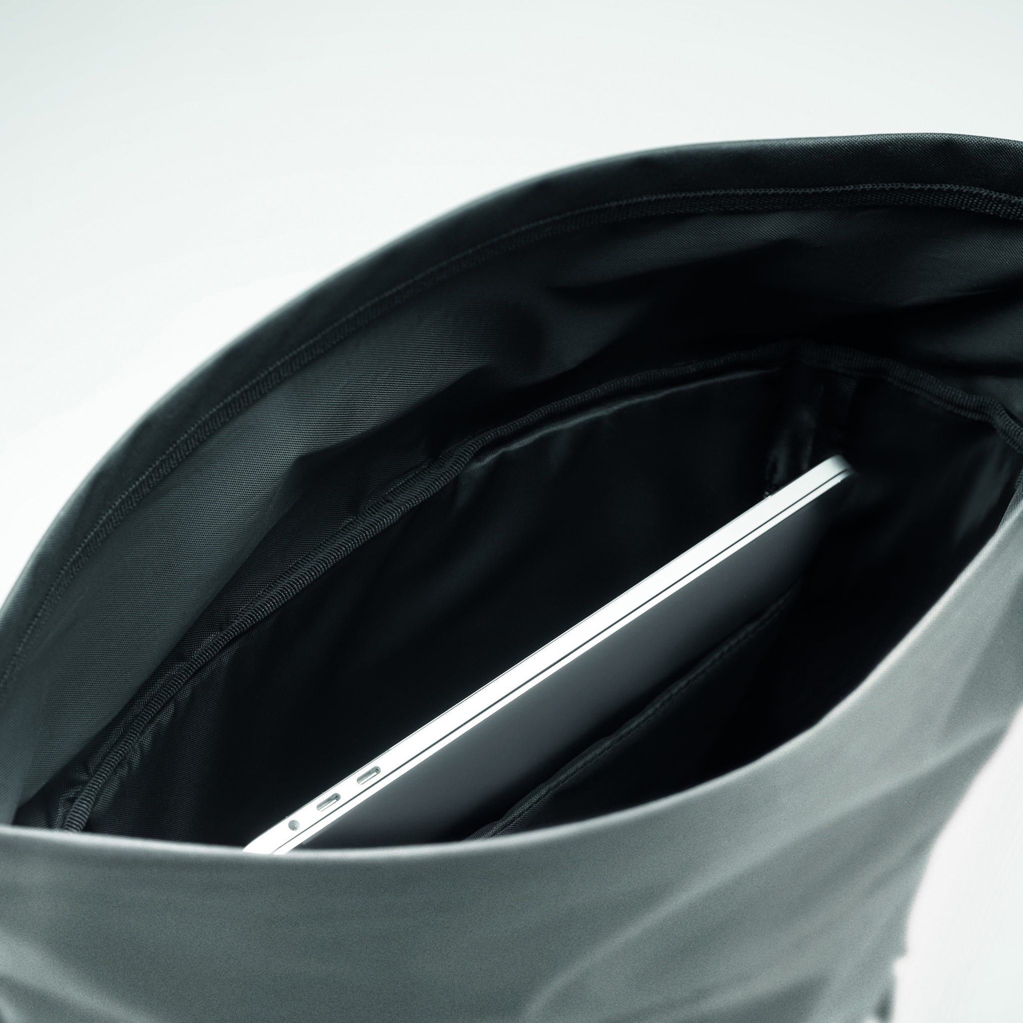15-tolline sülearvuti rull-seljakott, mis on valmistatud hästi peegeldavast 190T polüestrist. Täiendav sisekülg konksu ja aasaga kinnisega. Polsterdatud seljaosa, rihmad ja alumine osa. Eespoolne lukuga tasku. Alumine osa 600D taaskasutatud polüestrist.