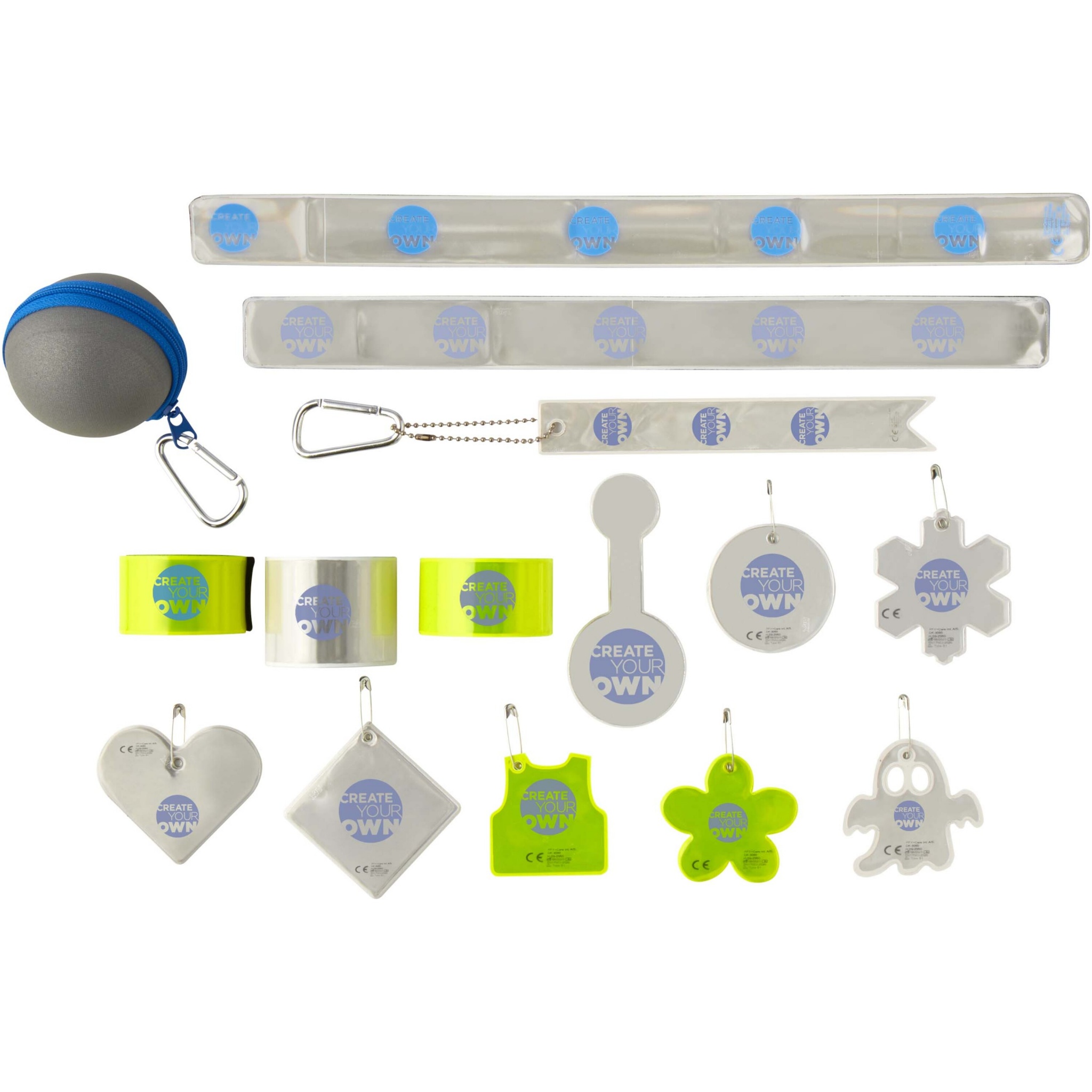 Sisaldab 5 ümbrist, 8 helkurpuud, 1 helkurmagnetit, 1 peegeldavat meteoori ja 1 helkurit tootekataloogi. Euroopas toodetud tooted on testitud ja sertifitseeritud vastavalt EN17353:2020 standardile Tüüp B1 ja B2, tagades kõrge kvaliteedi ja nähtavuse.