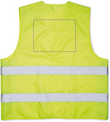Turvavest, mis on valmistatud 100% kootud polüestrist Class2 hästi nähtava helkurteibiga. EN ISO 20471.
