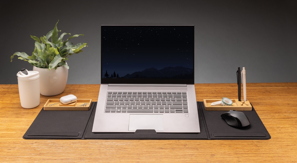 Logotrade reklaamtoote foto: Impact AWARE RPET Kokkupandav lauakorraldaja sülearvuti alusega