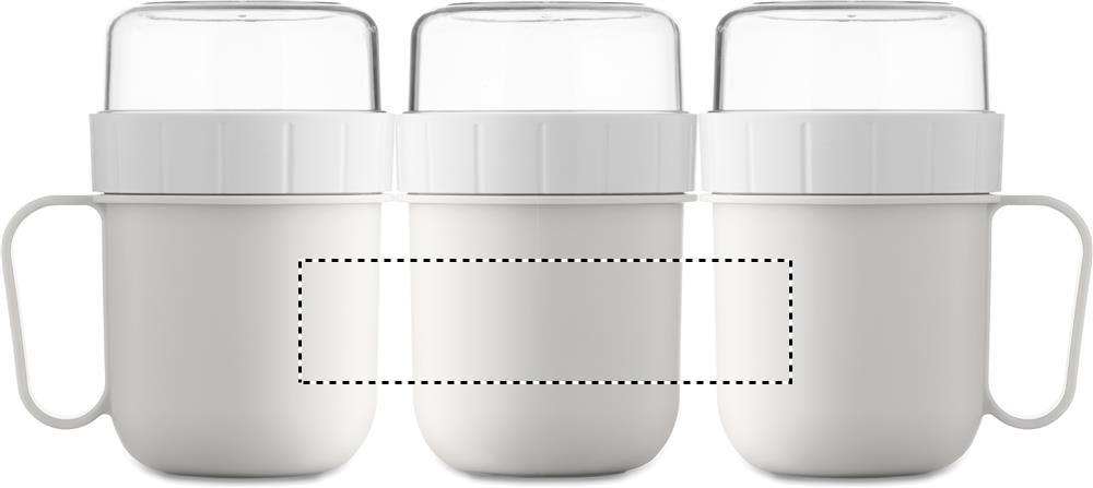 Mugav viis hommikusöögi kaasa võtmiseks. PP plastikust tass PS kaanega. Koosneb kahest eraldi mahutist koostisosade eraldi hoidmiseks. Mahutavus: 450 ml ja 160 ml. Lekkekindel.